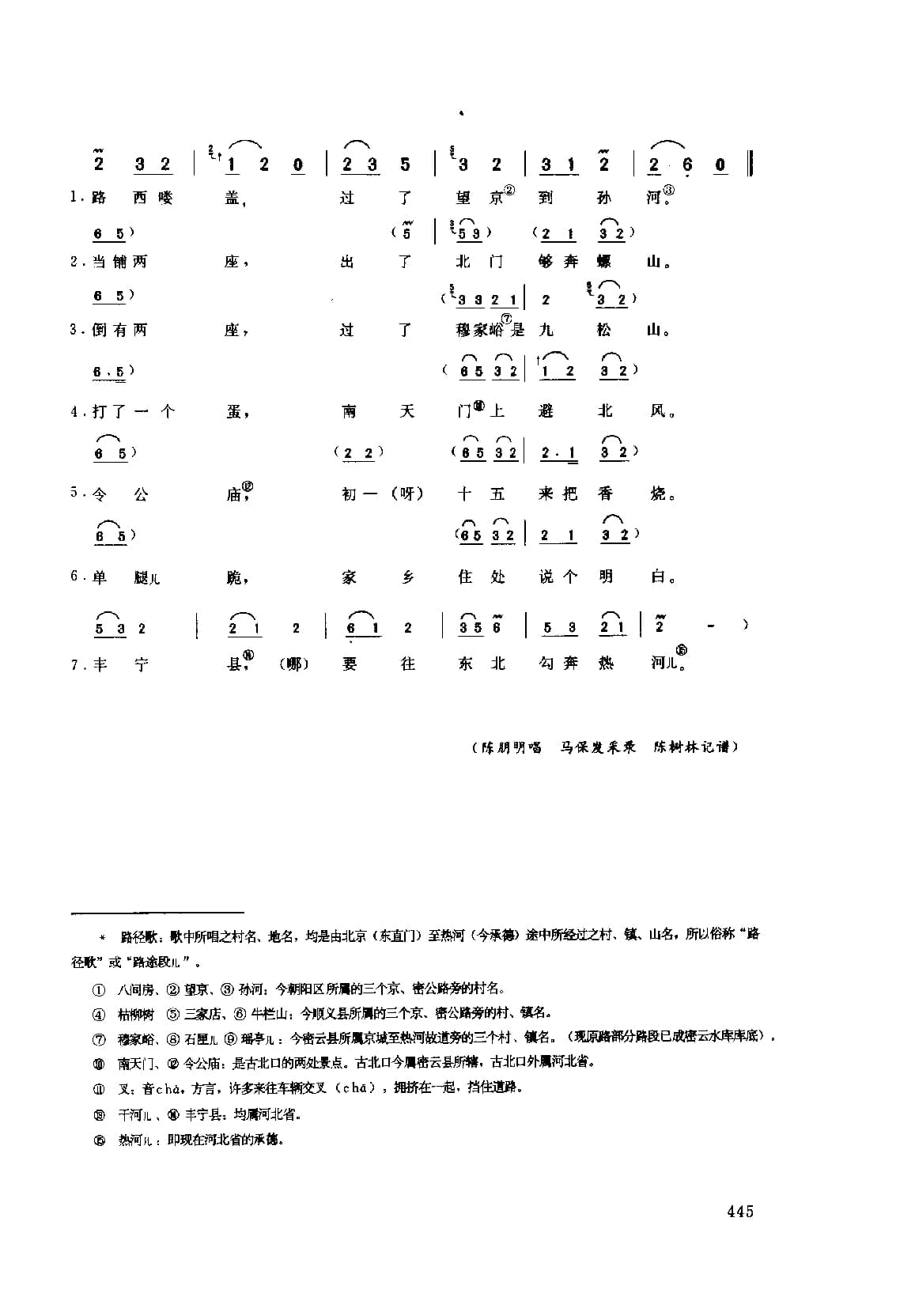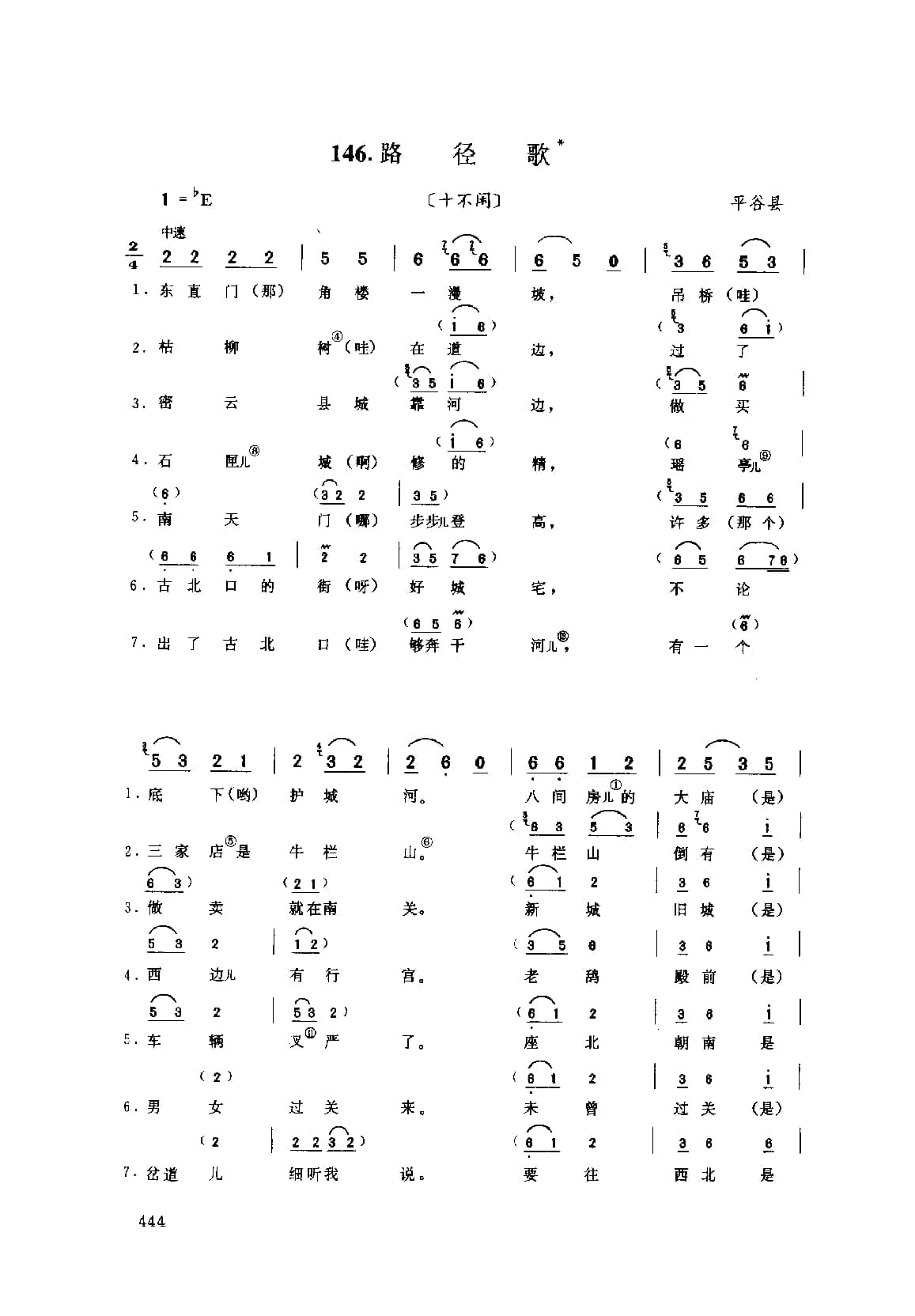 名称:花会歌:路径歌 平谷县 北京民间歌曲简谱