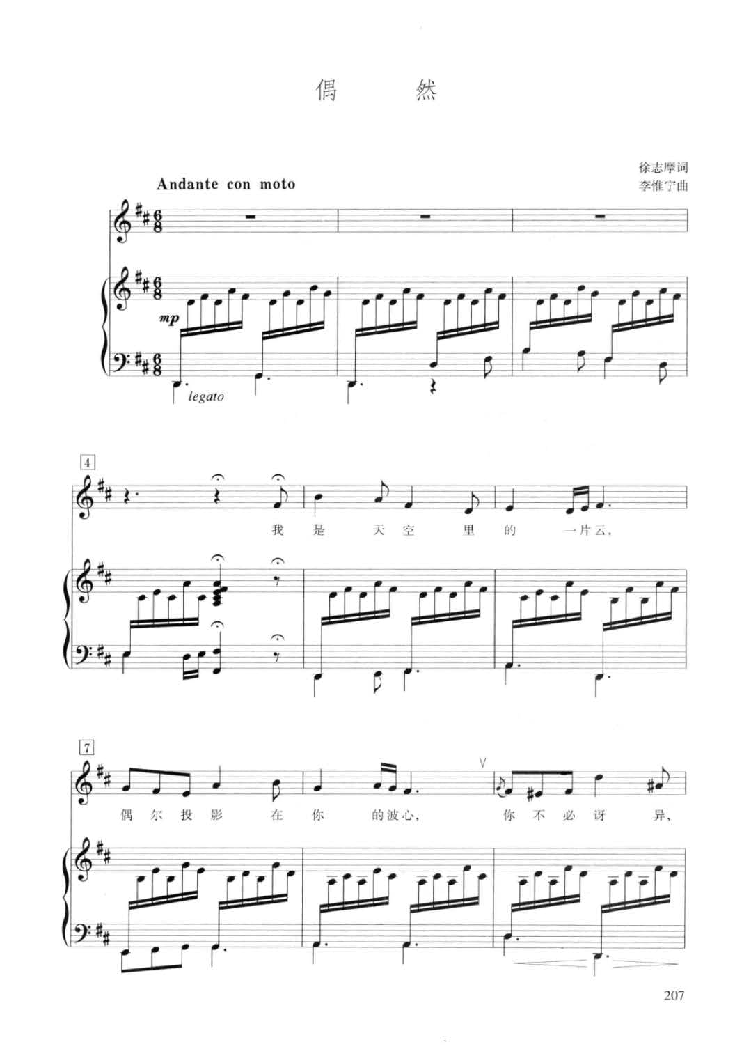 声乐五线谱:偶 然 徐志摩词 李惟宁曲
