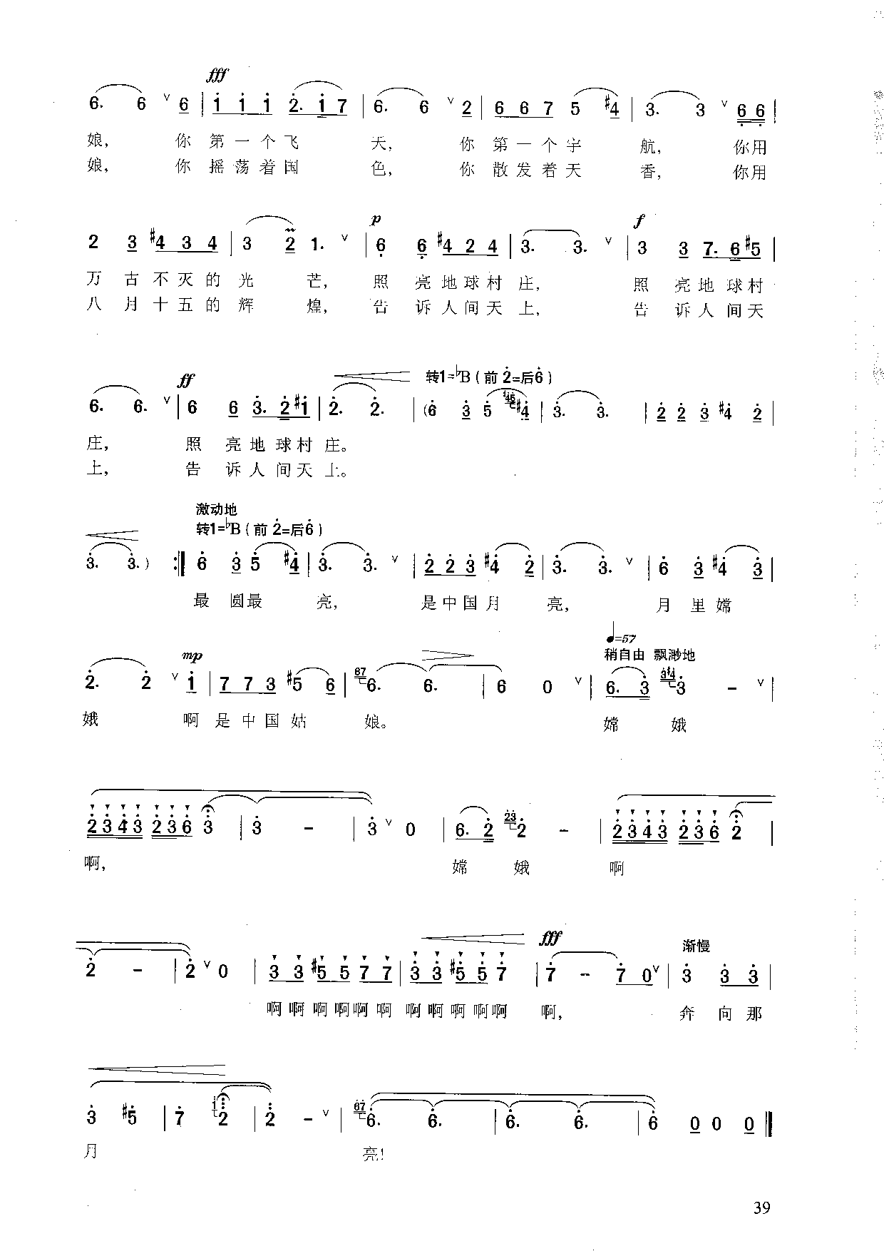 歌曲简谱:嫦娥奔月 夏劲风词 江晖曲
