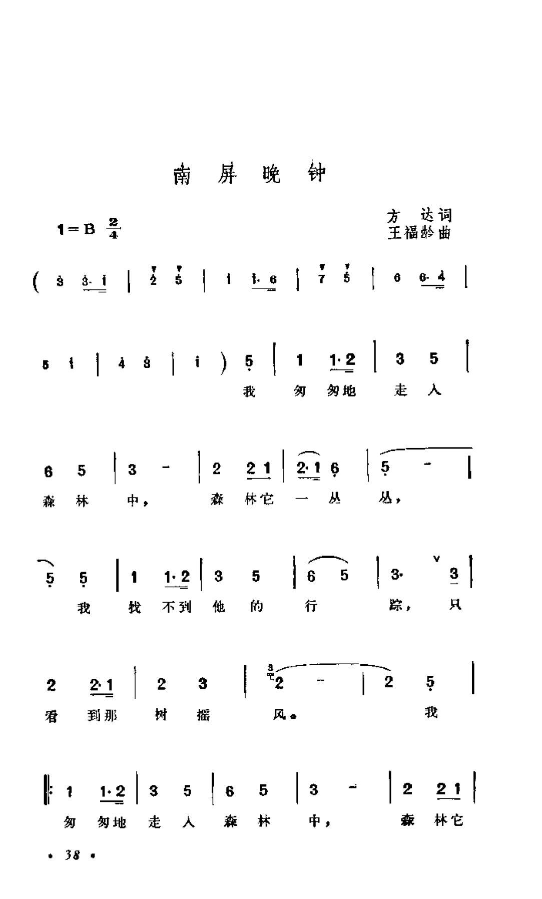 南屏晚钟 方达词 王福龄曲简谱歌词是曲谱查询网于2025年01月08日 16:33:56更新在通俗歌曲谱频道中的内容,收录在通俗歌曲谱栏目中;曲谱查询网分享的南屏晚钟 方达词 王福龄曲简谱五线谱高清图片,欢迎在线免费下载;曲谱查询网无需注册,即可直接下载海量歌曲谱与乐器学习相关资料。