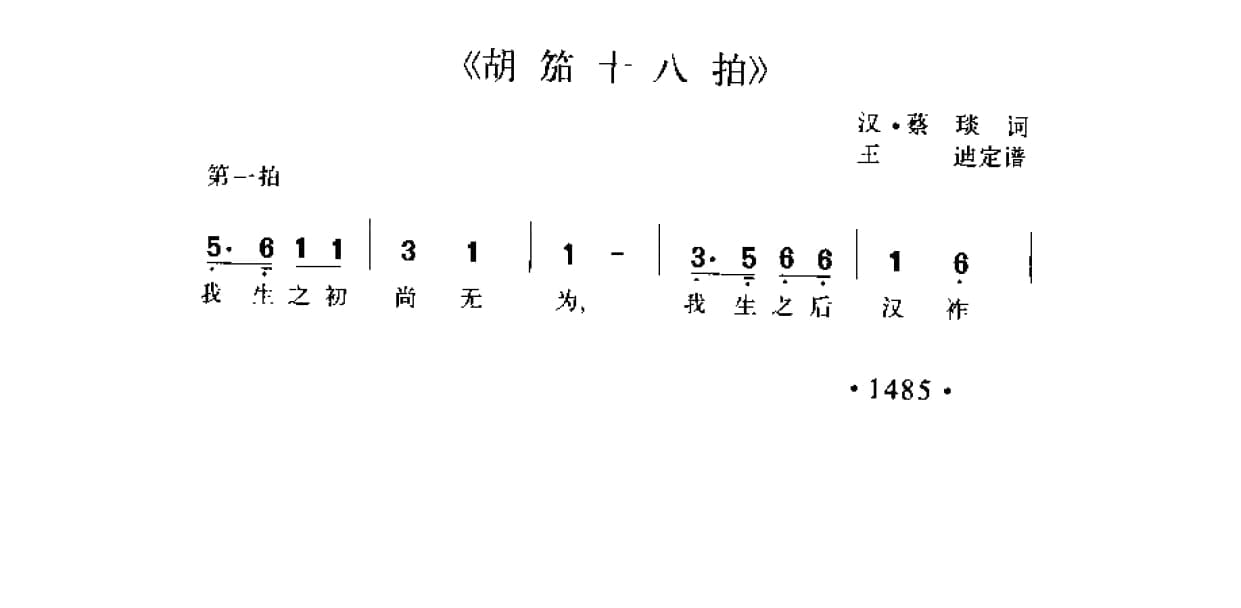 名称:胡茄十八拍 汉 蔡球词 王迪定谱