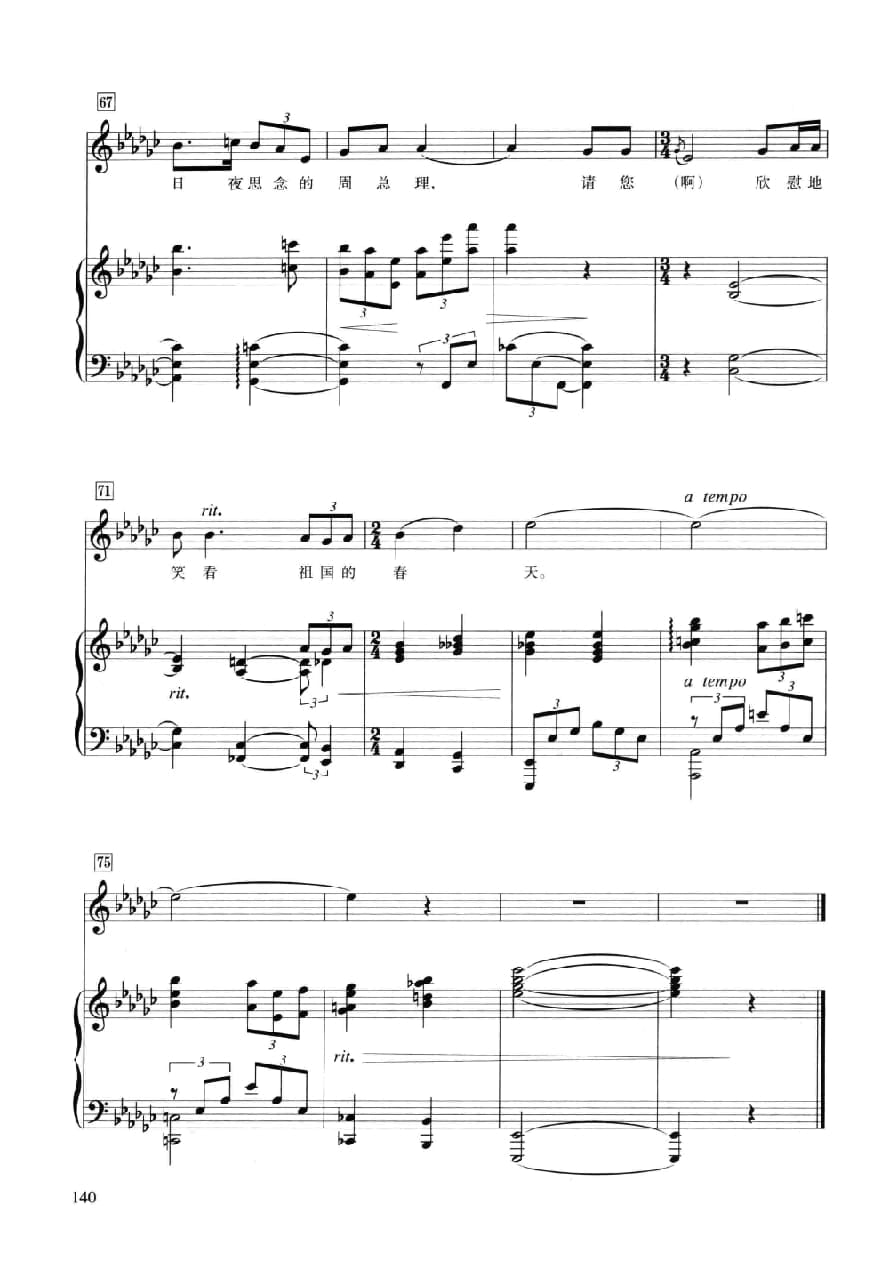 声乐五线谱:送上我心头的思念 柯岩诗 施万春曲