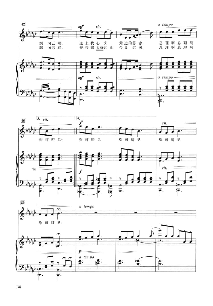 名称:声乐五线谱:送上我心头的思念 柯岩诗 施万春曲国家:中国分类:声乐谱子类:民族唱法歌谱类型:五线谱文件格式:jpg