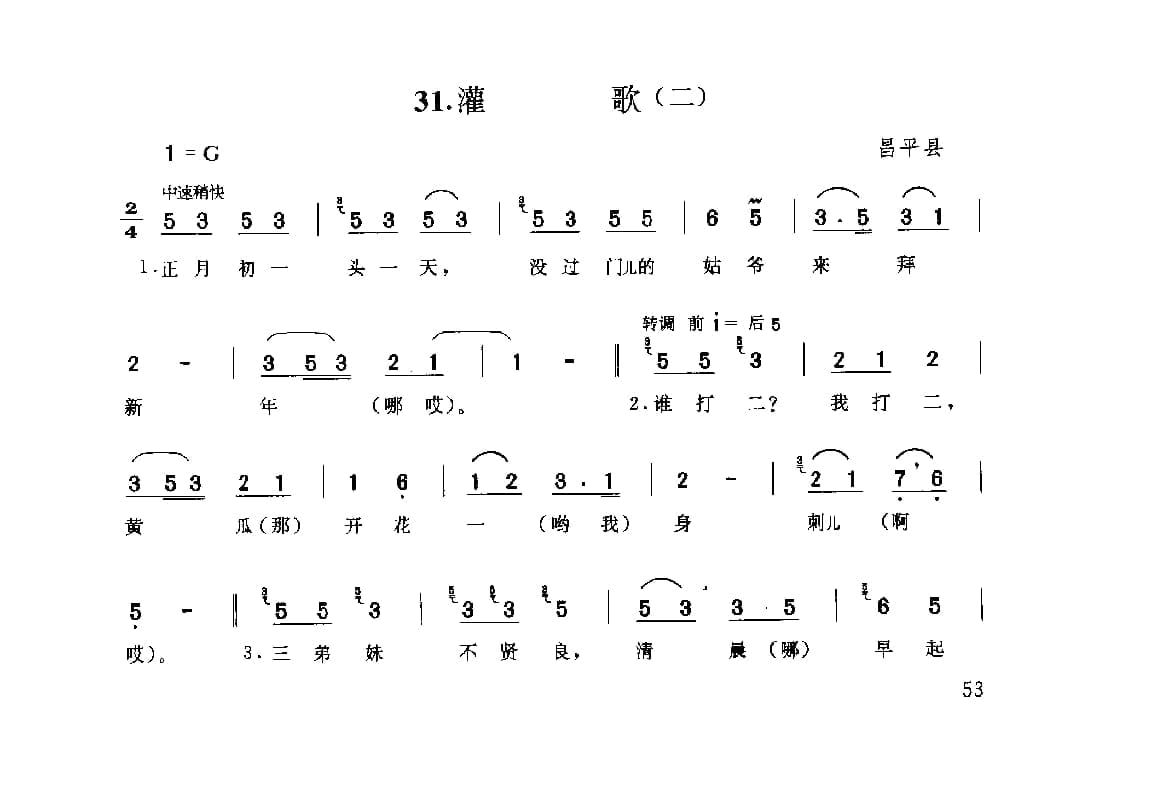 名称:劳动号子:灌歌 二 昌平县 号子释文 北京民间歌曲简谱