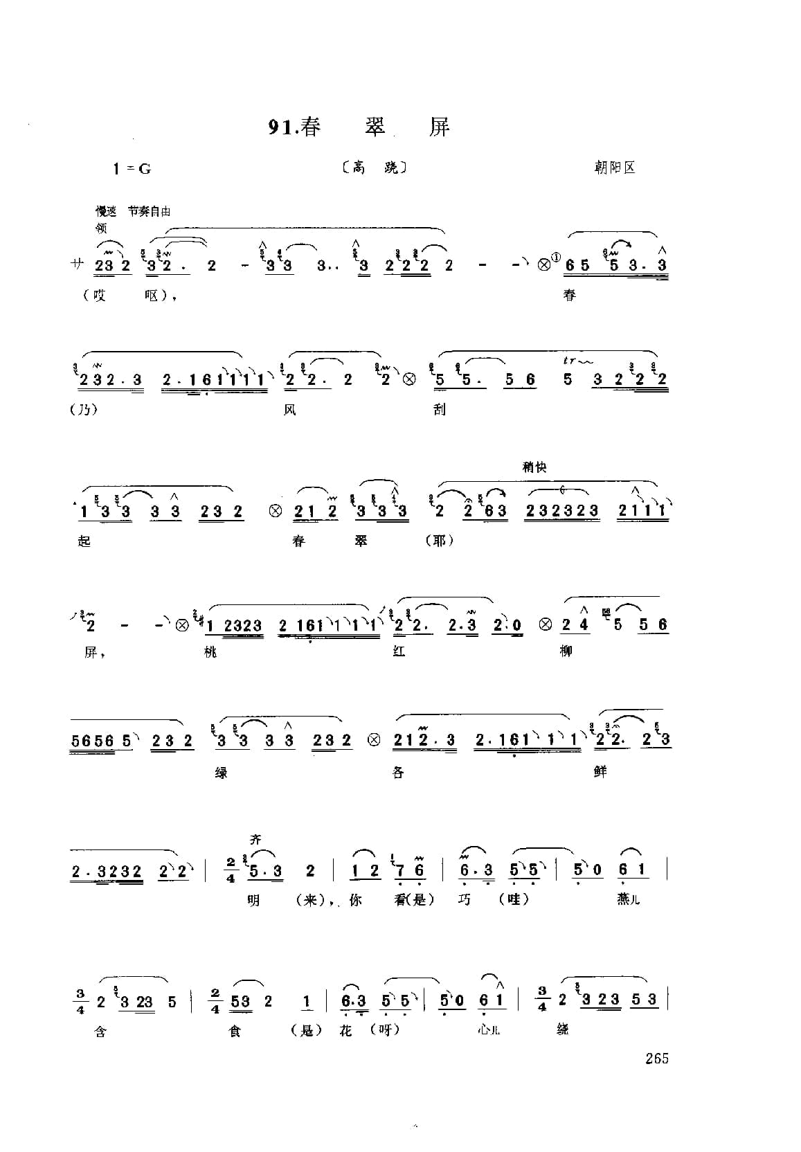 名称:花会歌:春翠屏 朝阳区 北京民间歌曲简谱