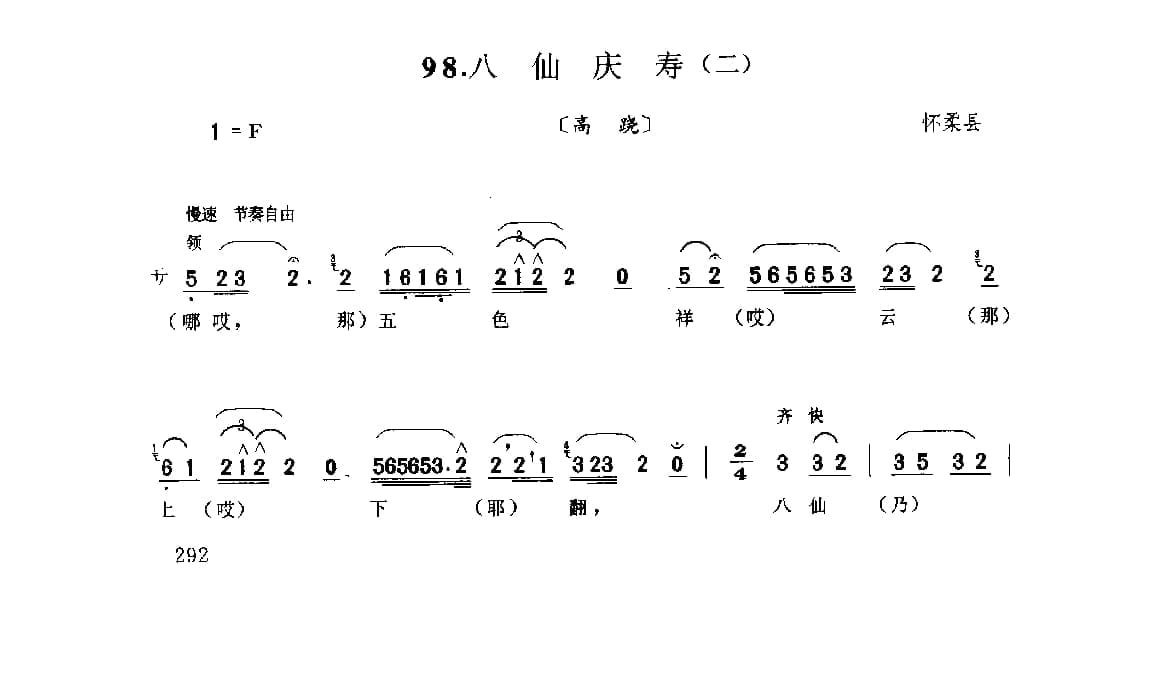 名称:花会歌:八仙庆寿 二 怀柔县 北京民间歌曲简谱