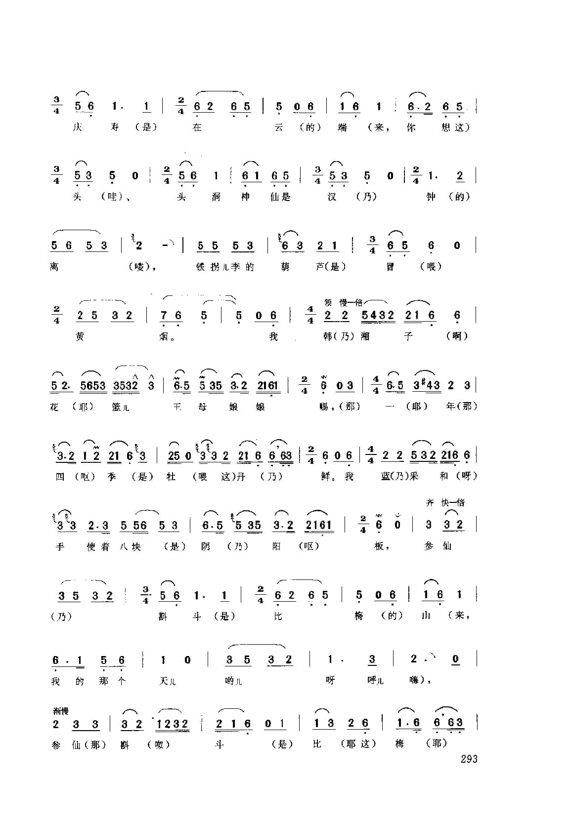 花会歌:八仙庆寿(二) 怀柔县(北京民间歌曲简谱)