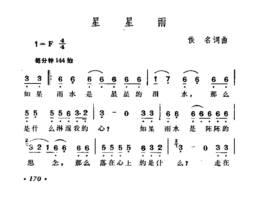 星星雨 佚名词曲简谱歌词是曲谱查询网于2025年01月09日 10:57:48更新在通俗歌曲谱频道中的内容,收录在通俗歌曲谱栏目中;曲谱查询网分享的星星雨 佚名词曲简谱五线谱高清图片,欢迎在线免费下载;曲谱查询网无需注册,即可直接下载海量歌曲谱与乐器学习相关资料。