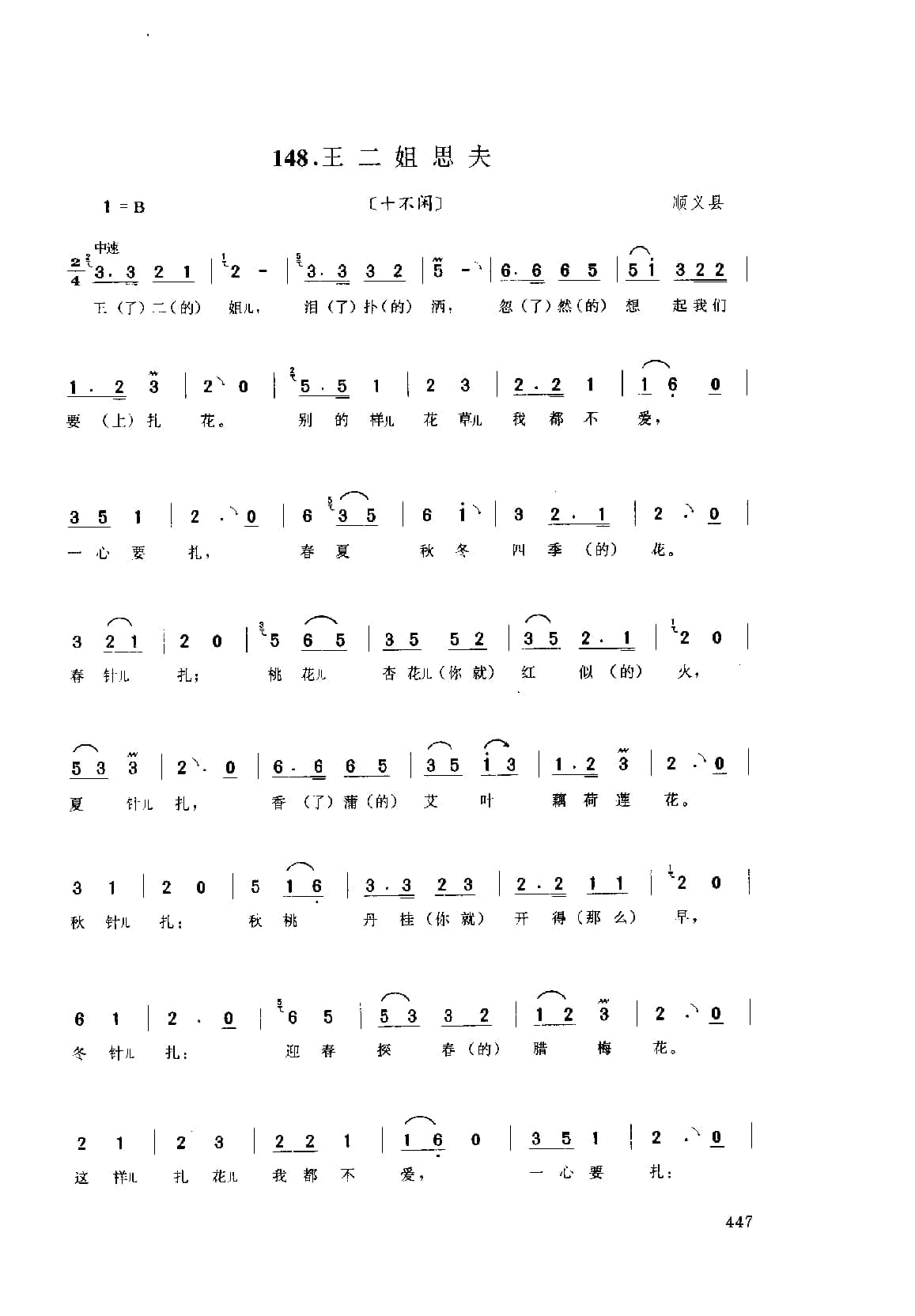 名称:花会歌:王二姐思夫 顺义县 北京民间歌曲简谱