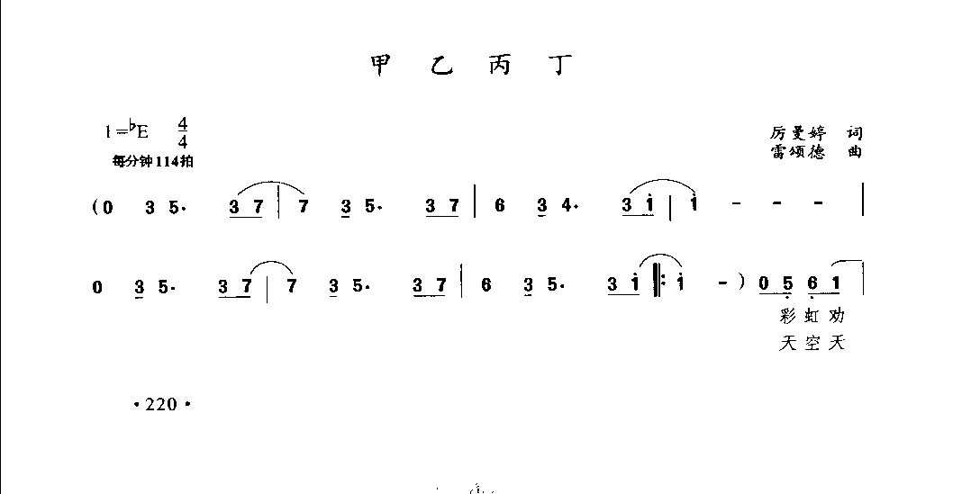 甲乙丙丁(厉受婷词 露颂德曲)简谱歌词是曲谱查询网于2025年01月04日 11:59:33更新在通俗歌曲谱频道中的内容,收录在通俗歌曲谱栏目中;曲谱查询网分享的甲乙丙丁(厉受婷词 露颂德曲)简谱五线谱高清图片,欢迎在线免费下载;曲谱查询网无需注册,即可直接下载海量歌曲谱与乐器学习相关资料。