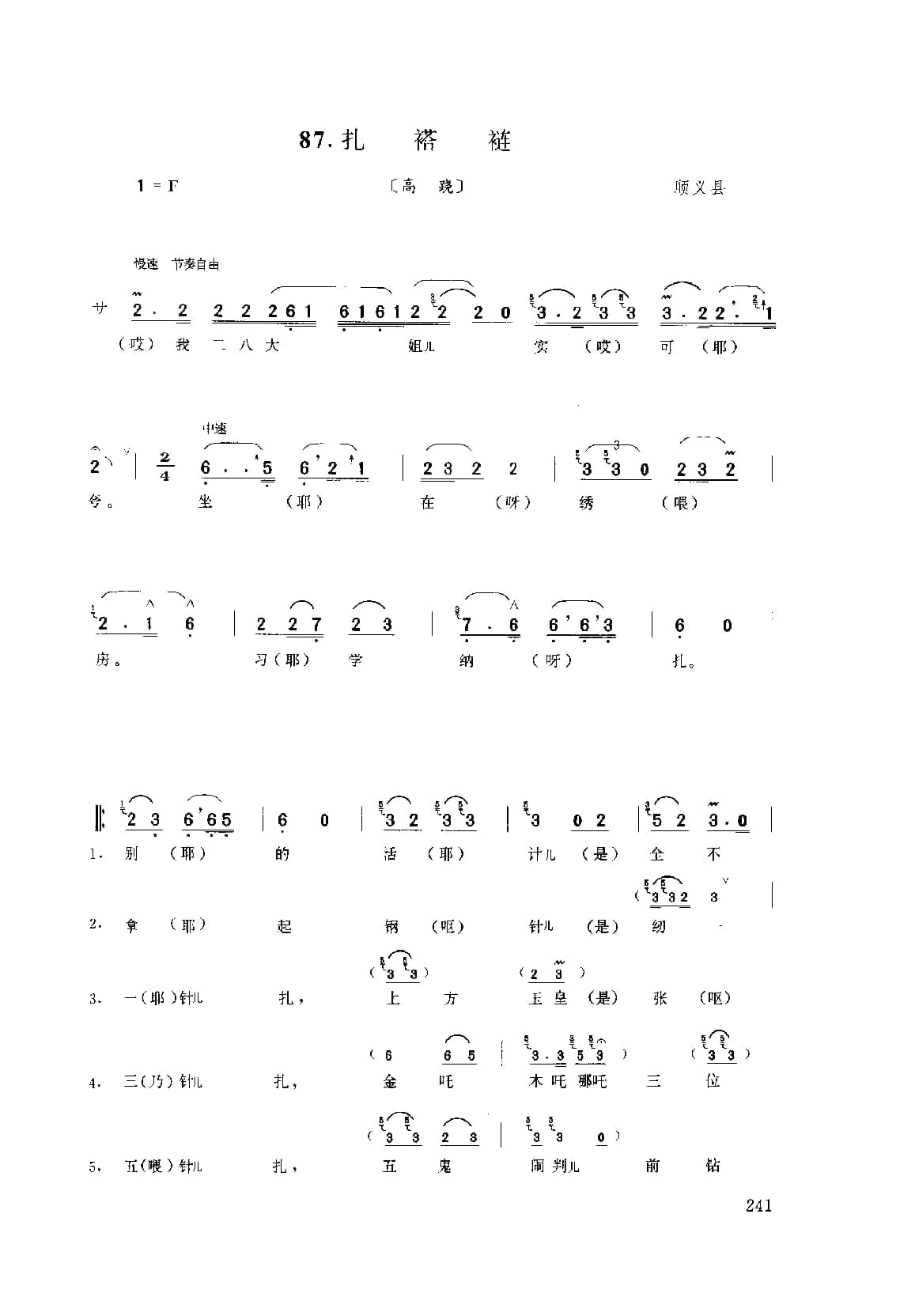 名称:花会歌:扎褡裢 顺义县 北京民间歌曲简谱