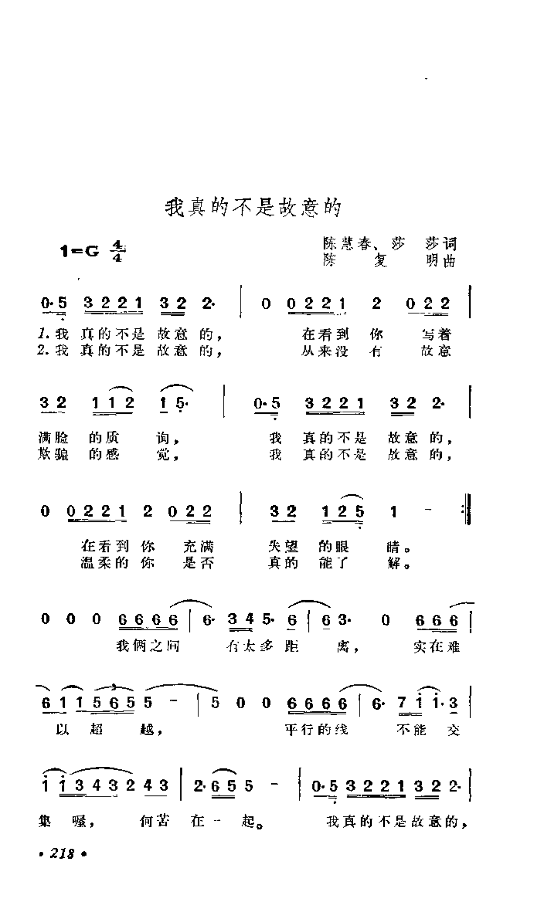 我真的不是故意的 陈慧春 莎莎词 陈复明曲