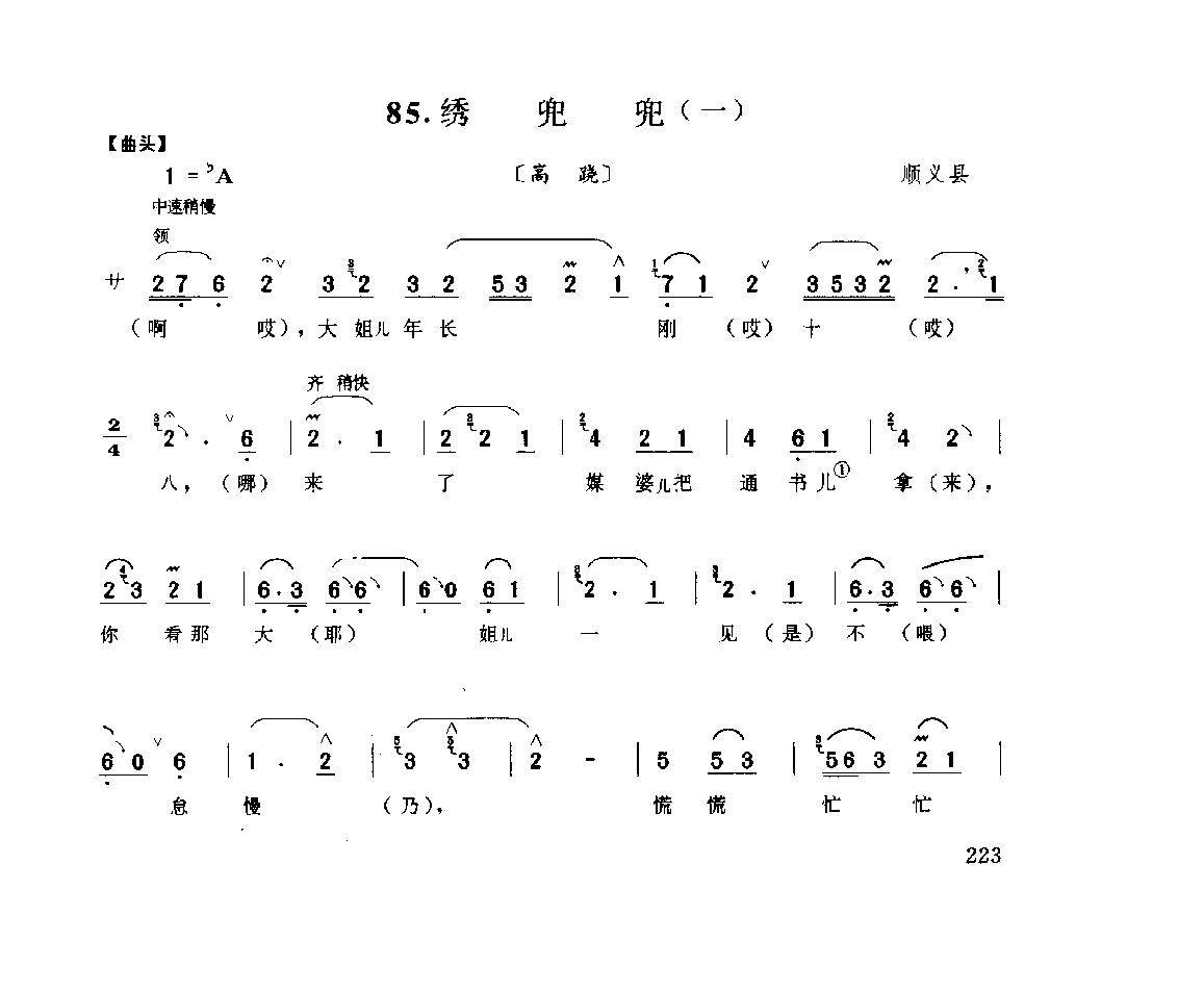 花会歌:绣兜兜(一) 顺义县(北京民间歌曲简谱)