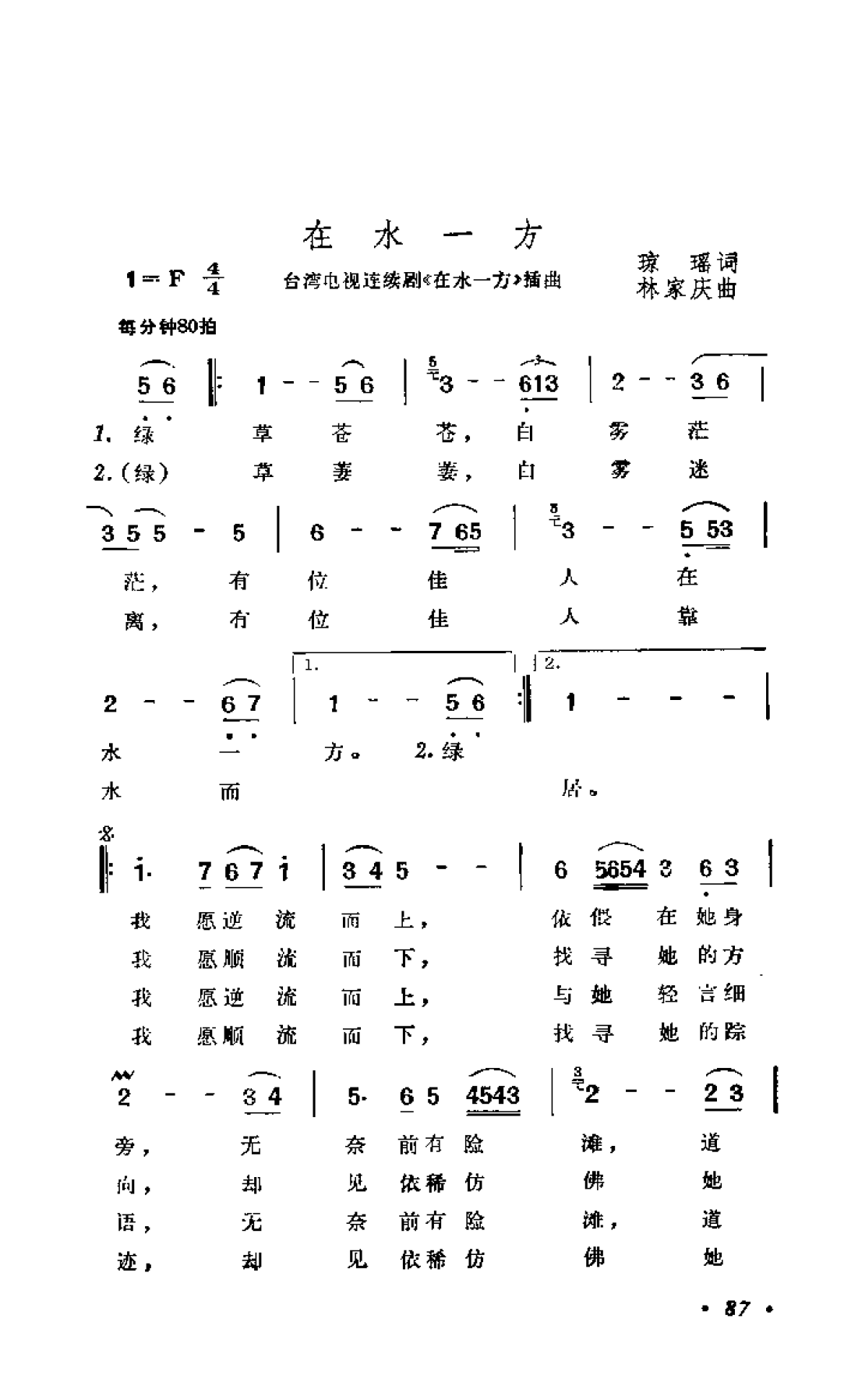 在水一方(台湾电视连续剧在水一方>插曲)琼瑶词 林家庆曲