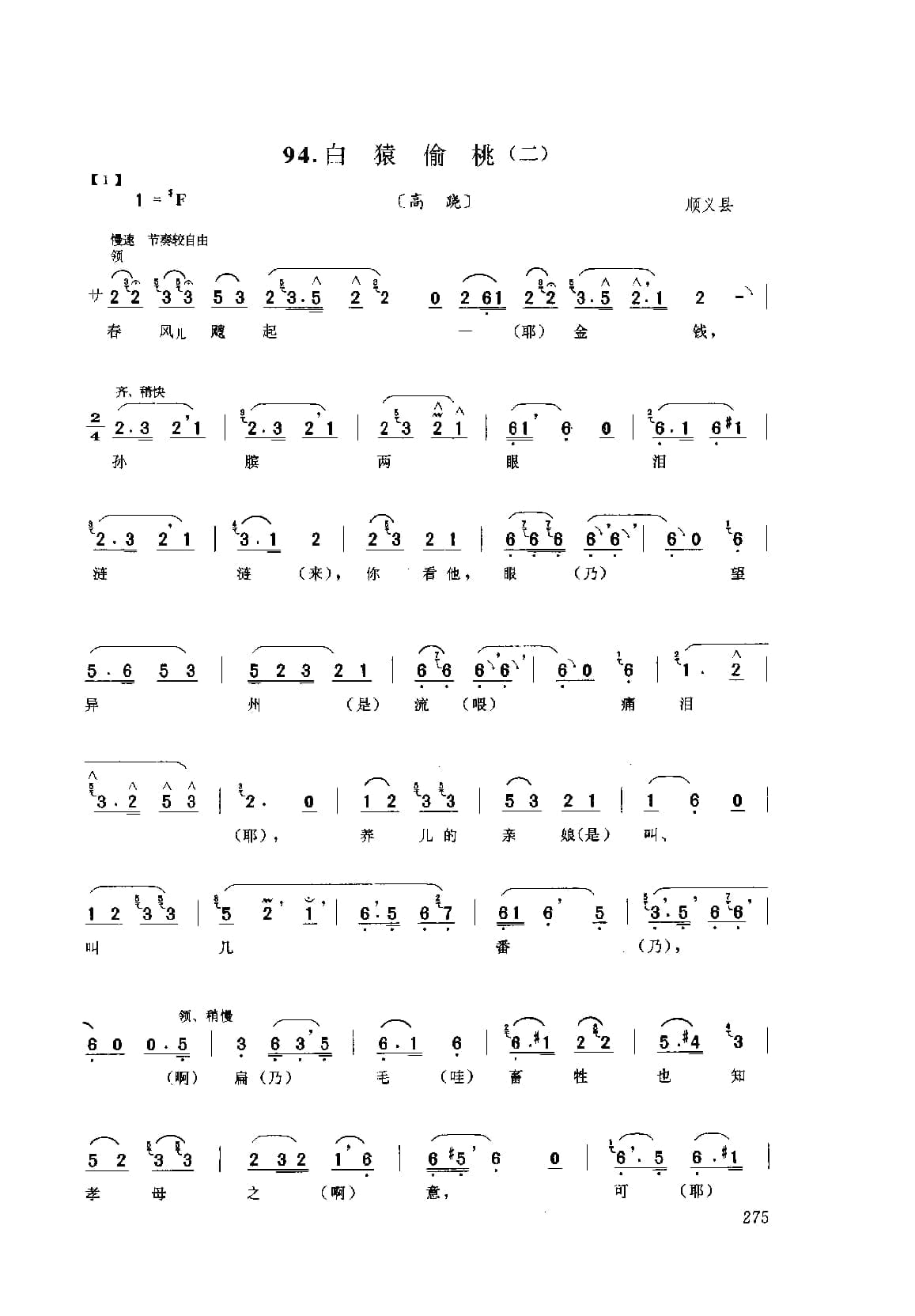 花会歌:白猿偷桃(二) 顺义县(北京民间歌曲简谱)