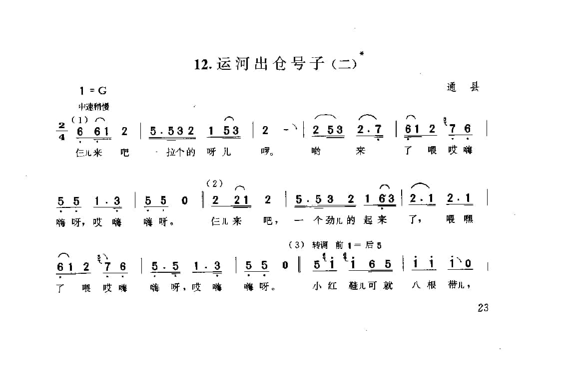 名称:劳动号子:运河出仓号子 二 通县 号子释文 北京民间歌曲简谱