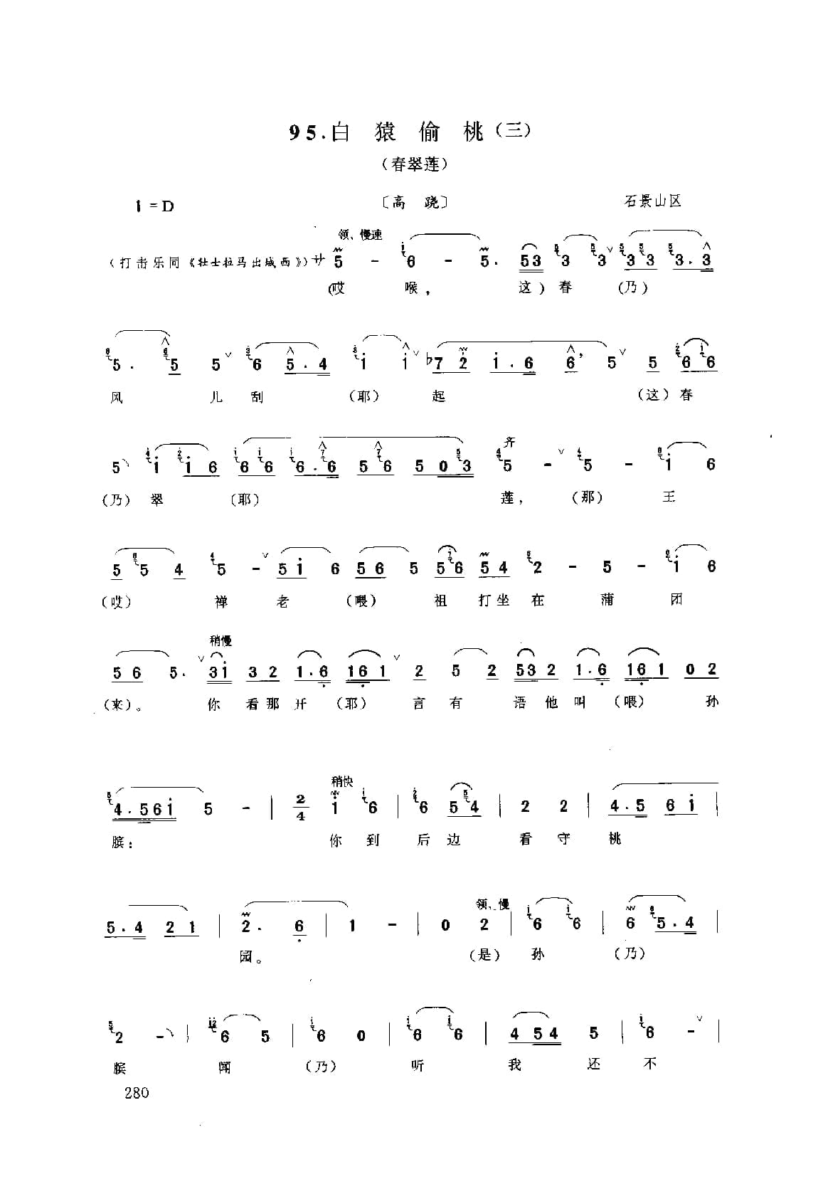 花会歌:白猿偷桃(三)&石景山区(北京民间歌曲简谱)