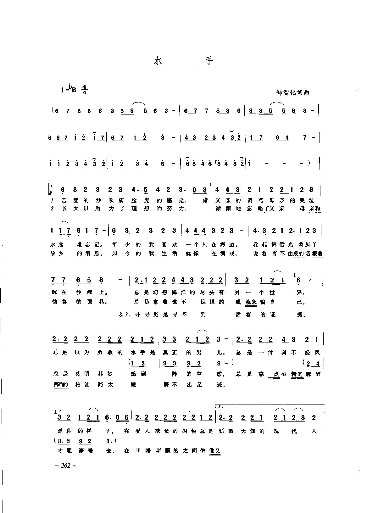 水手 郑智化词曲简谱歌词是曲谱查询网于2025年01月06日 16:26:14更新在通俗歌曲谱频道中的内容,收录在通俗歌曲谱栏目中;曲谱查询网分享的水手 郑智化词曲简谱五线谱高清图片,欢迎在线免费下载;曲谱查询网无需注册,即可直接下载海量歌曲谱与乐器学习相关资料。