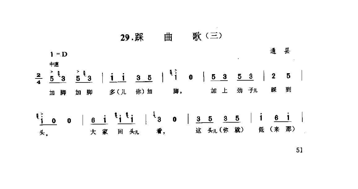 名称:劳动号子:踩曲歌 三 通县 号子释文 北京民间歌曲简谱