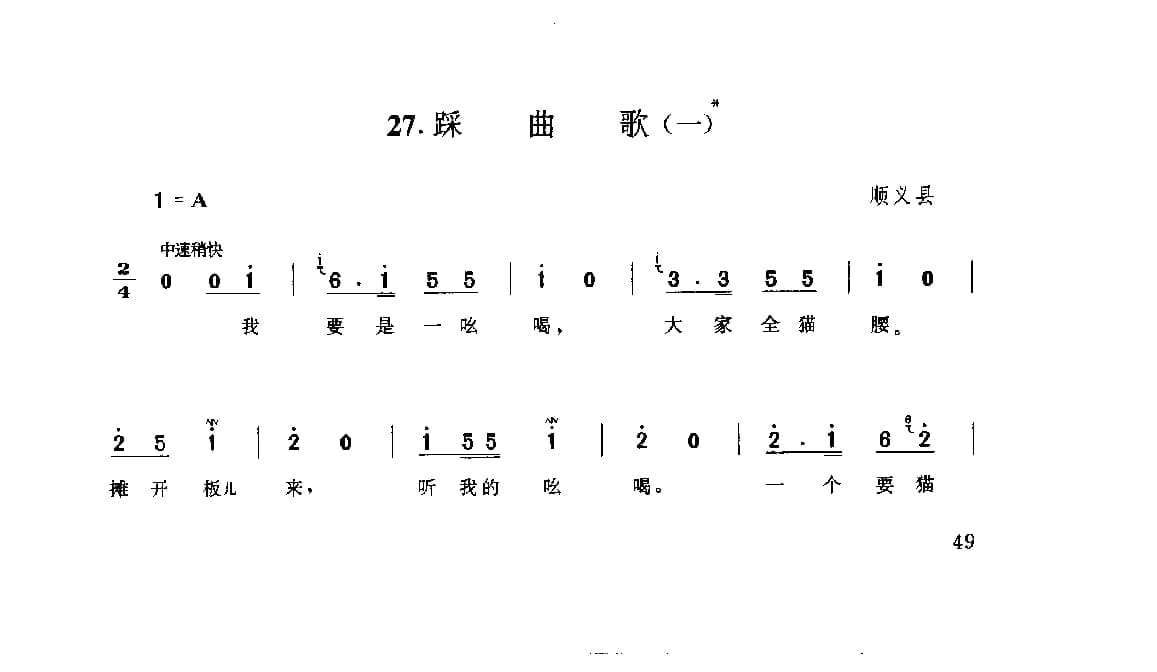 名称:劳动号子:踩曲歌 一 顺义县 号子释文 北京民间歌曲简谱