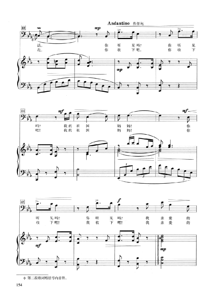 声乐五线谱:我的祖国妈妈 梁上泉词 施光南曲