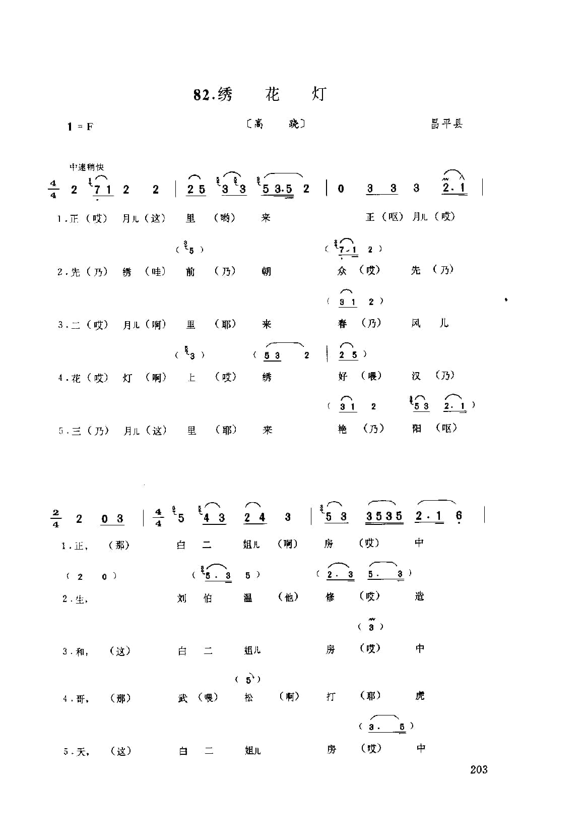 名称:花会歌:绣花灯 昌平县 北京民间歌曲简谱