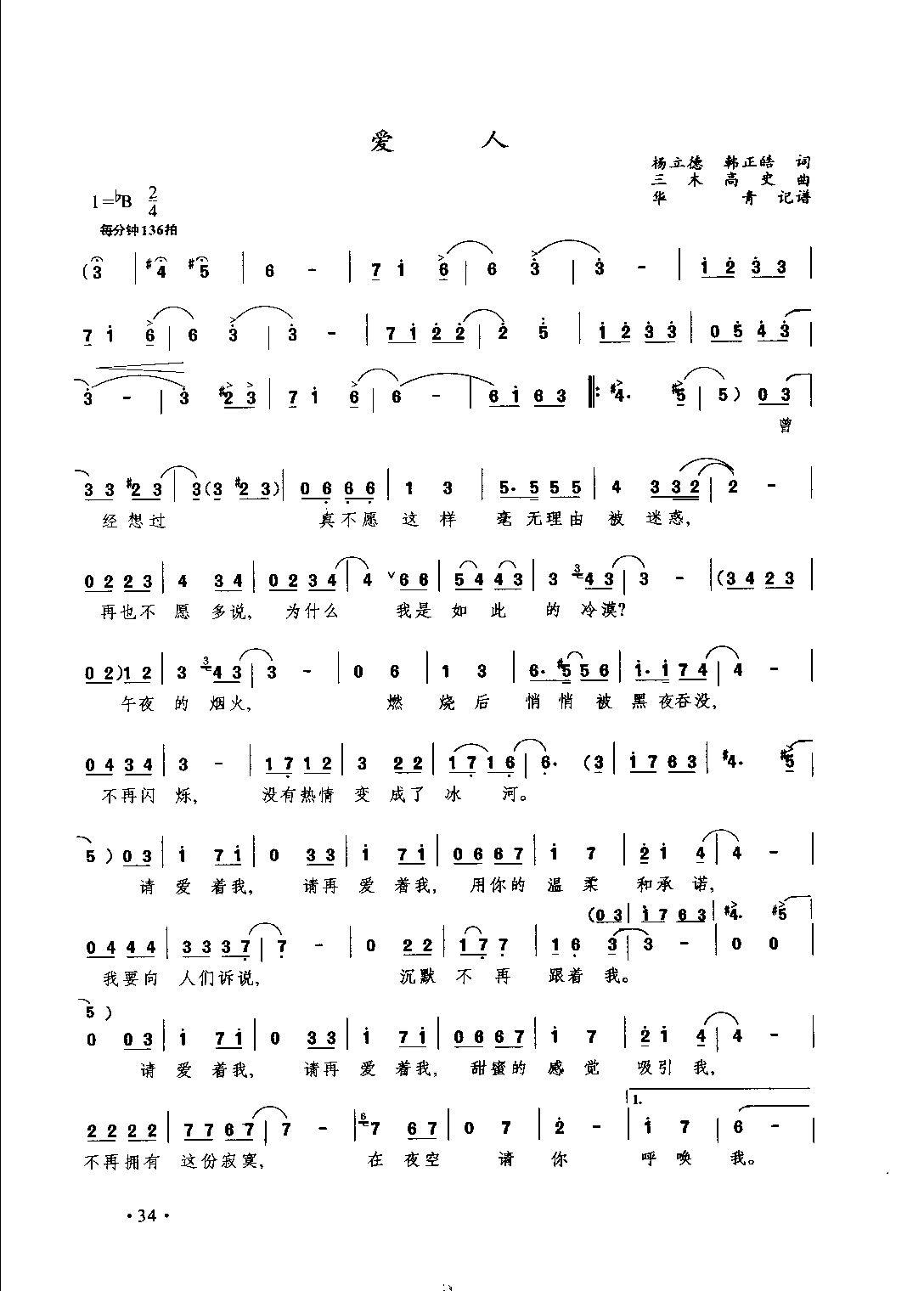 爱人(杨立德、韩正酷词 三木高史曲)