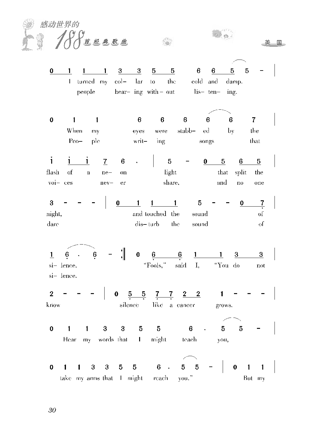 美国经典歌曲谱:寂静之声 简谱