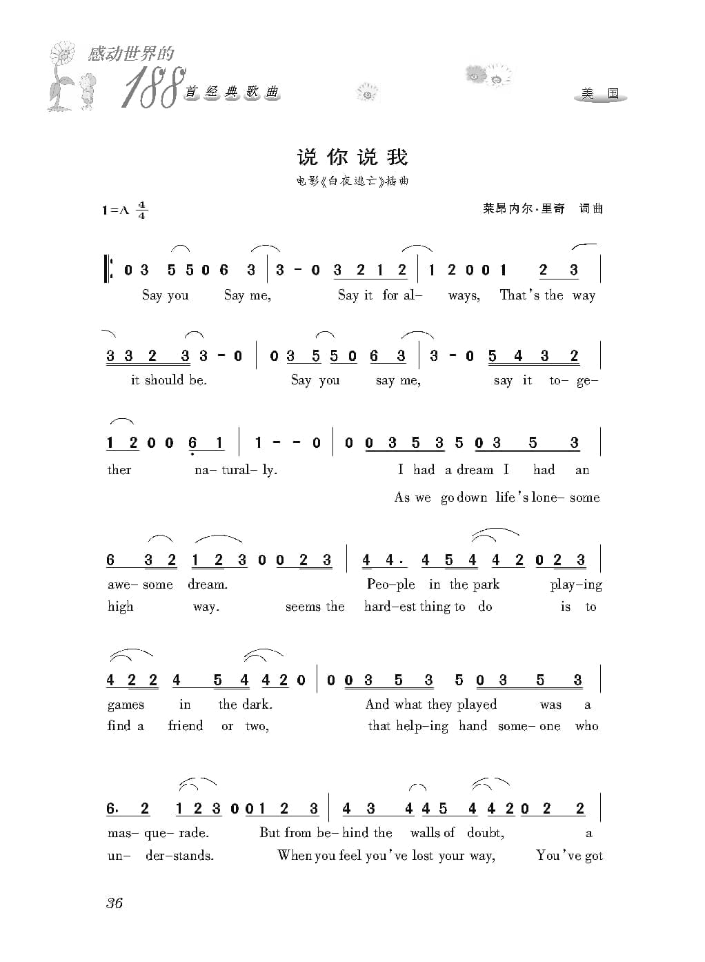 名称:美国经典歌曲谱:说你说我 简谱国家:美国分类:歌谱子类:外国歌谱类型:简谱文件格式:jpg