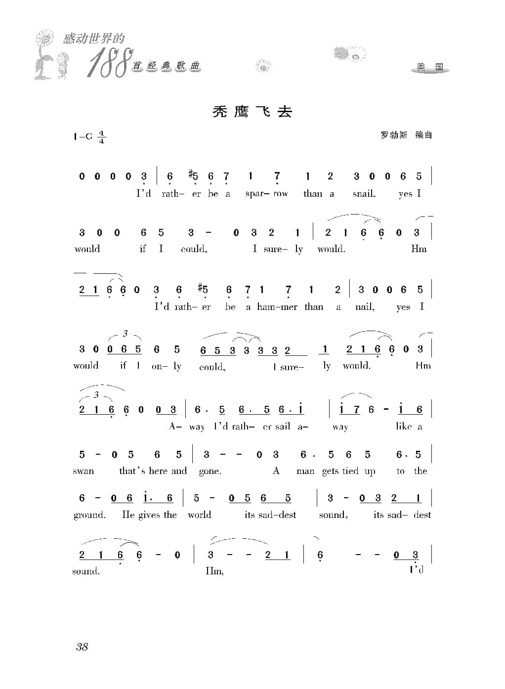 名称:美国经典歌曲谱:秃鹰飞去 简谱国家:美国分类:歌谱子类:外国歌谱类型:简谱文件格式:jpg