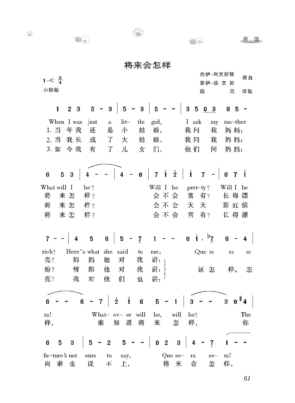 名称:美国经典歌曲谱:将来会怎样 简谱国家:美国分类:歌谱子类:外国歌谱类型:简谱文件格式:jpg