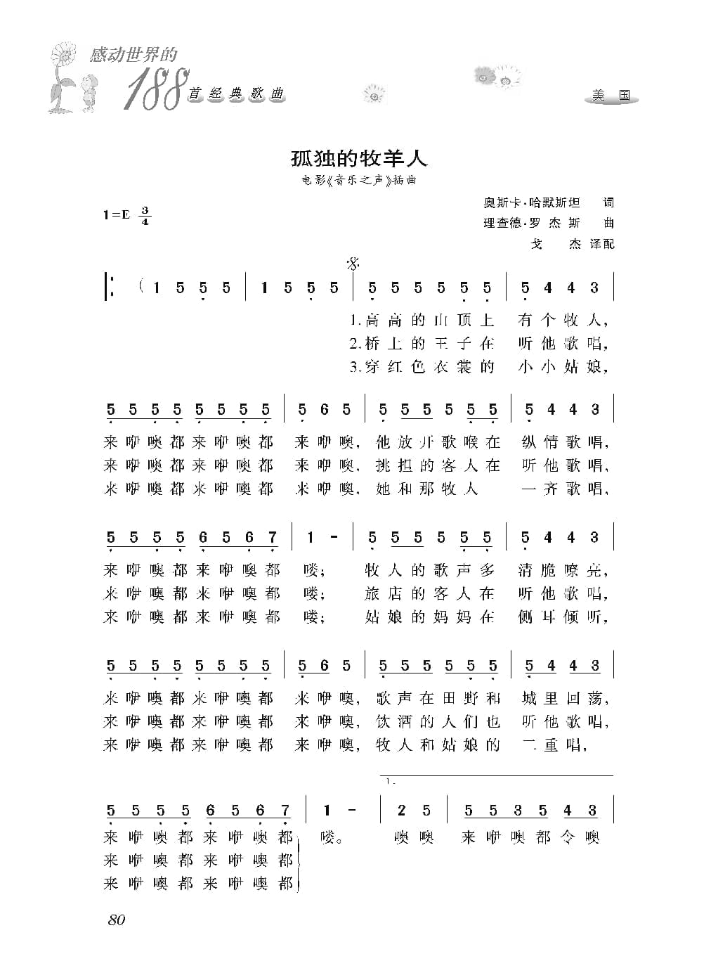 名称:美国经典歌曲谱:孤独的牧羊人 简谱国家:美国分类:歌谱子类:外国歌谱类型:简谱文件格式:jpg