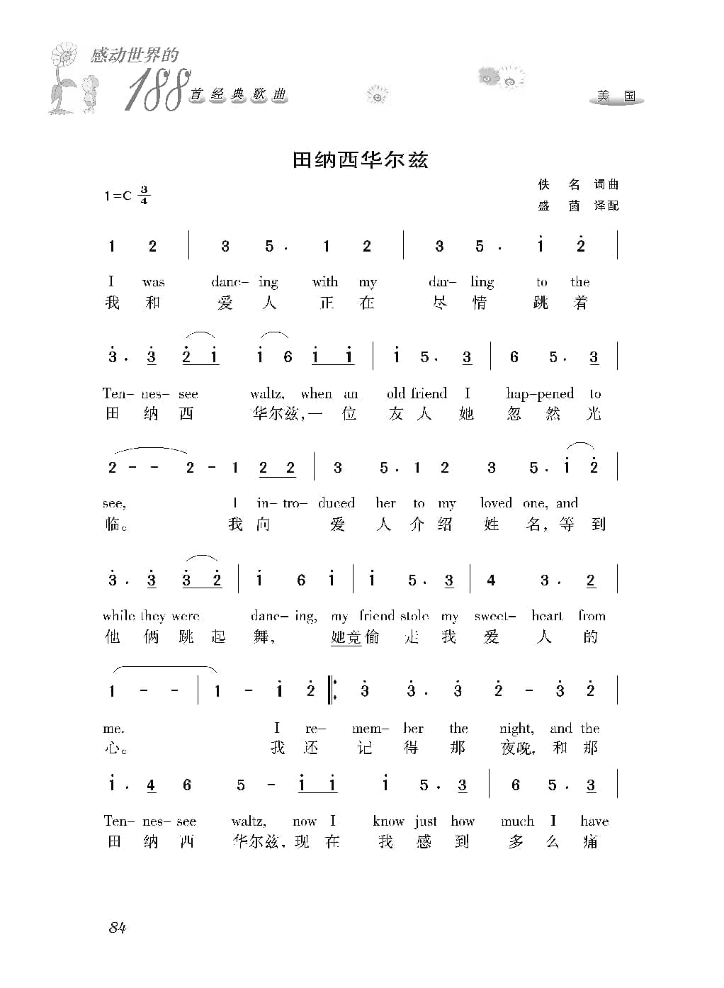 名称:美国经典歌曲谱:田纳西华尔兹 简谱