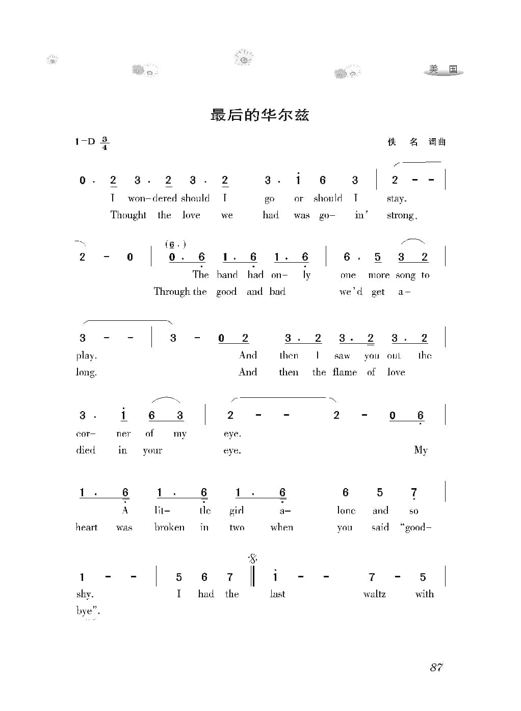 名称:美国经典歌曲谱:最后的华尔兹 简谱国家:美国分类:歌谱子类:外国歌谱类型:简谱文件格式:jpg
