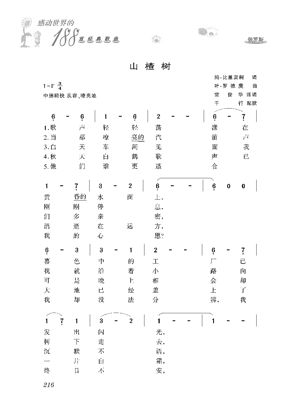 俄罗斯经典歌曲谱:山楂树 简谱简谱歌词是曲谱查询网于2025年01月02日 10:52:23更新在外国曲谱频道中的内容,收录在外国曲谱栏目中;曲谱查询网分享的俄罗斯经典歌曲谱:山楂树 简谱简谱五线谱高清图片,欢迎在线免费下载;曲谱查询网无需注册,即可直接下载海量歌曲谱与乐器学习相关资料。