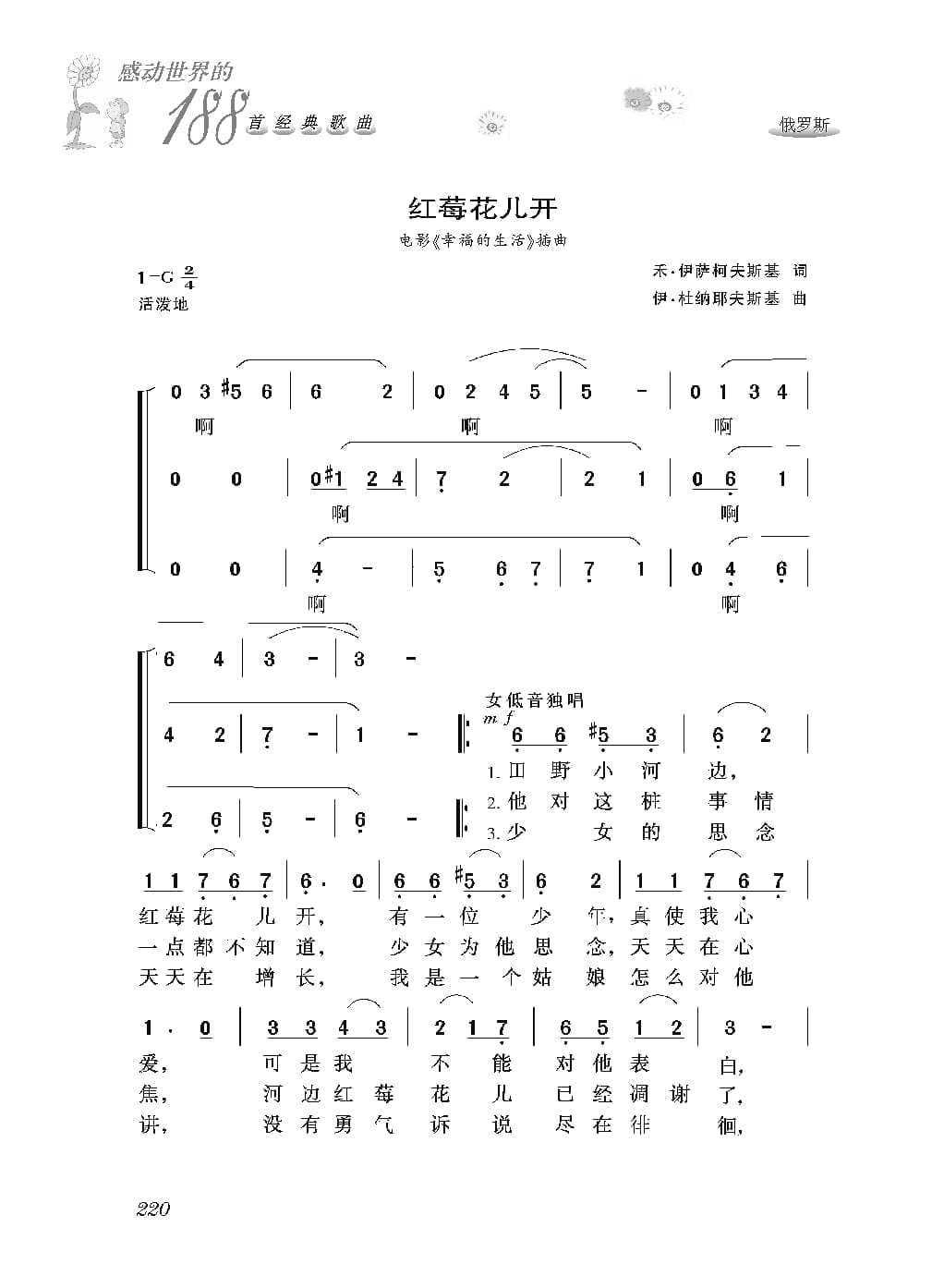 名称:俄罗斯经典歌曲谱:红莓花儿开 简谱国家:俄罗斯分类:歌谱子类:外国歌谱类型:简谱文件格式:jpg