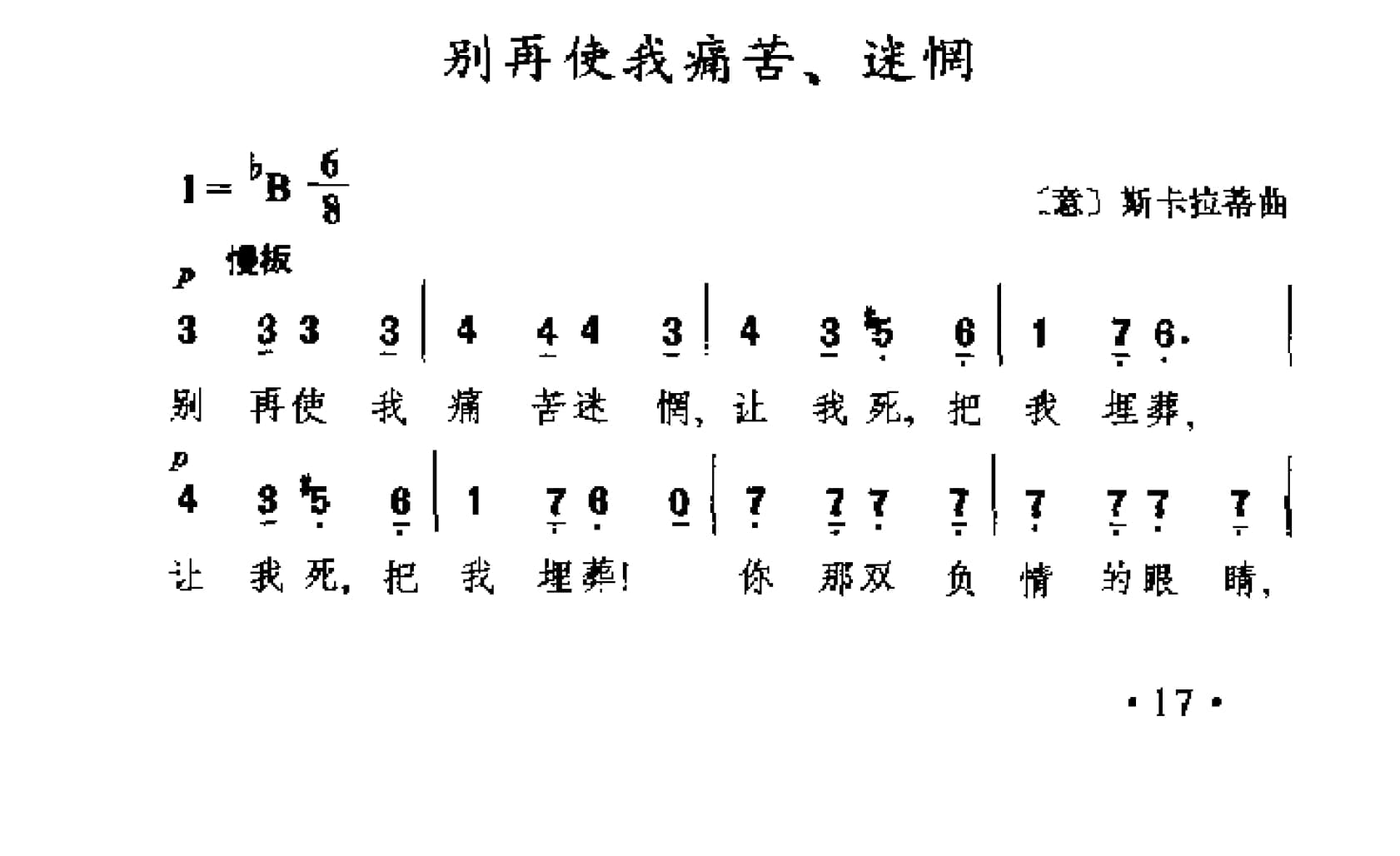 外国古典歌曲简谱:别再使我痛苦,迷惘(意)斯卡拉蒂曲