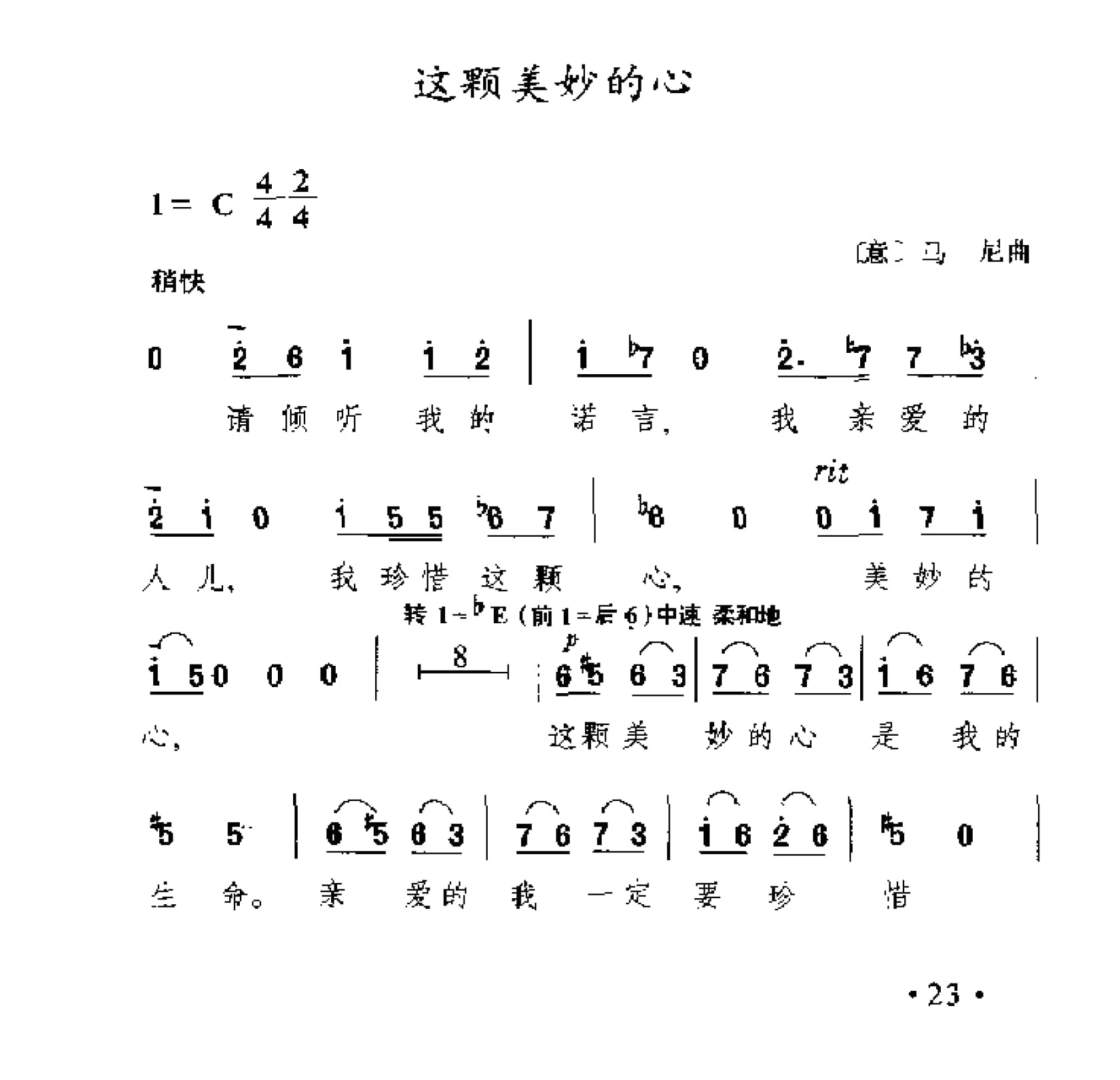 简谱歌曲集 外国名歌1000首 外国古典歌曲简谱:这颗美妙的心(意)马尼曲