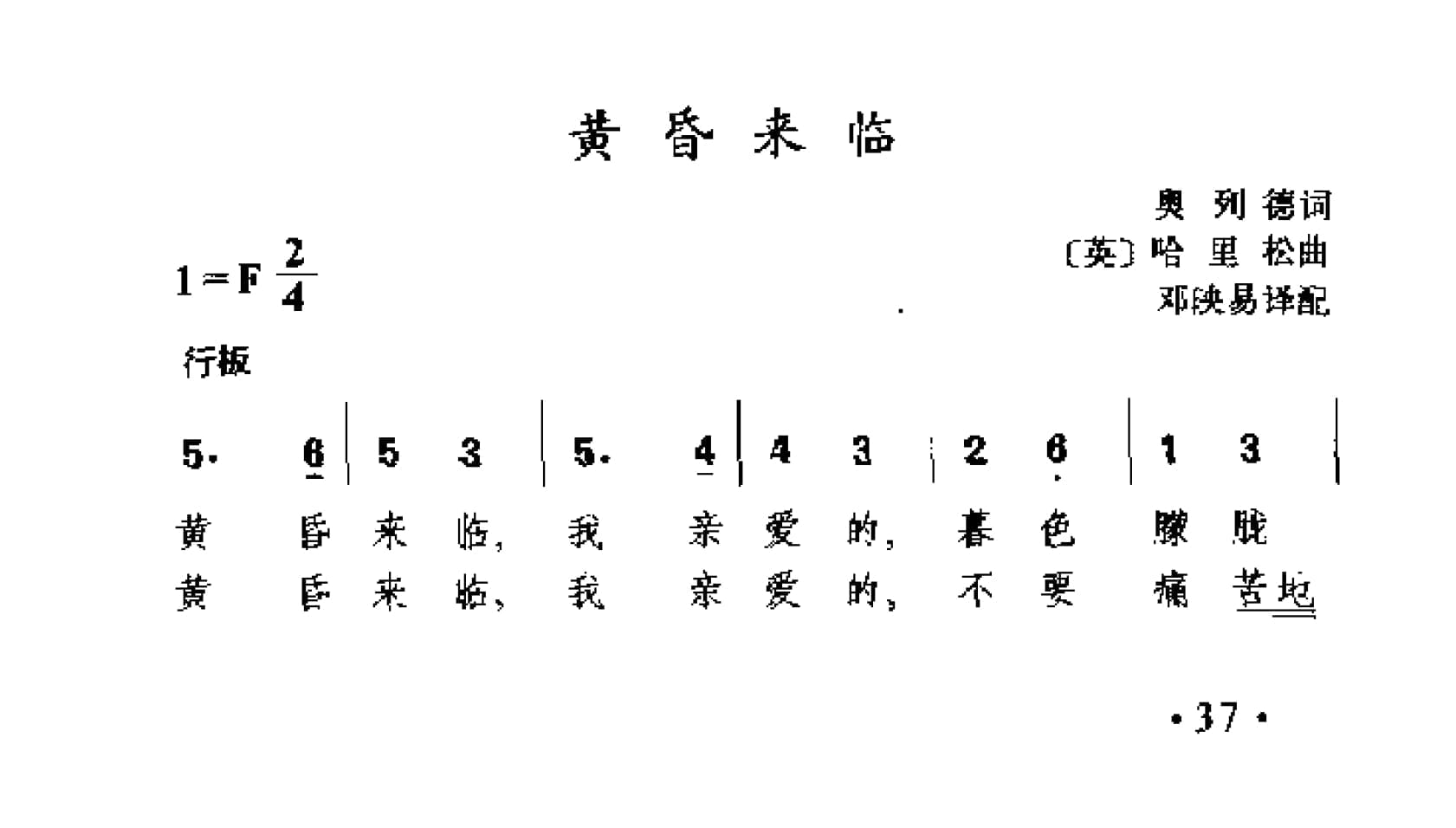 名称:黄昏来临 英 哈里松曲国家:英国分类:歌谱子类:外国歌谱类型:简谱文件格式:jpg