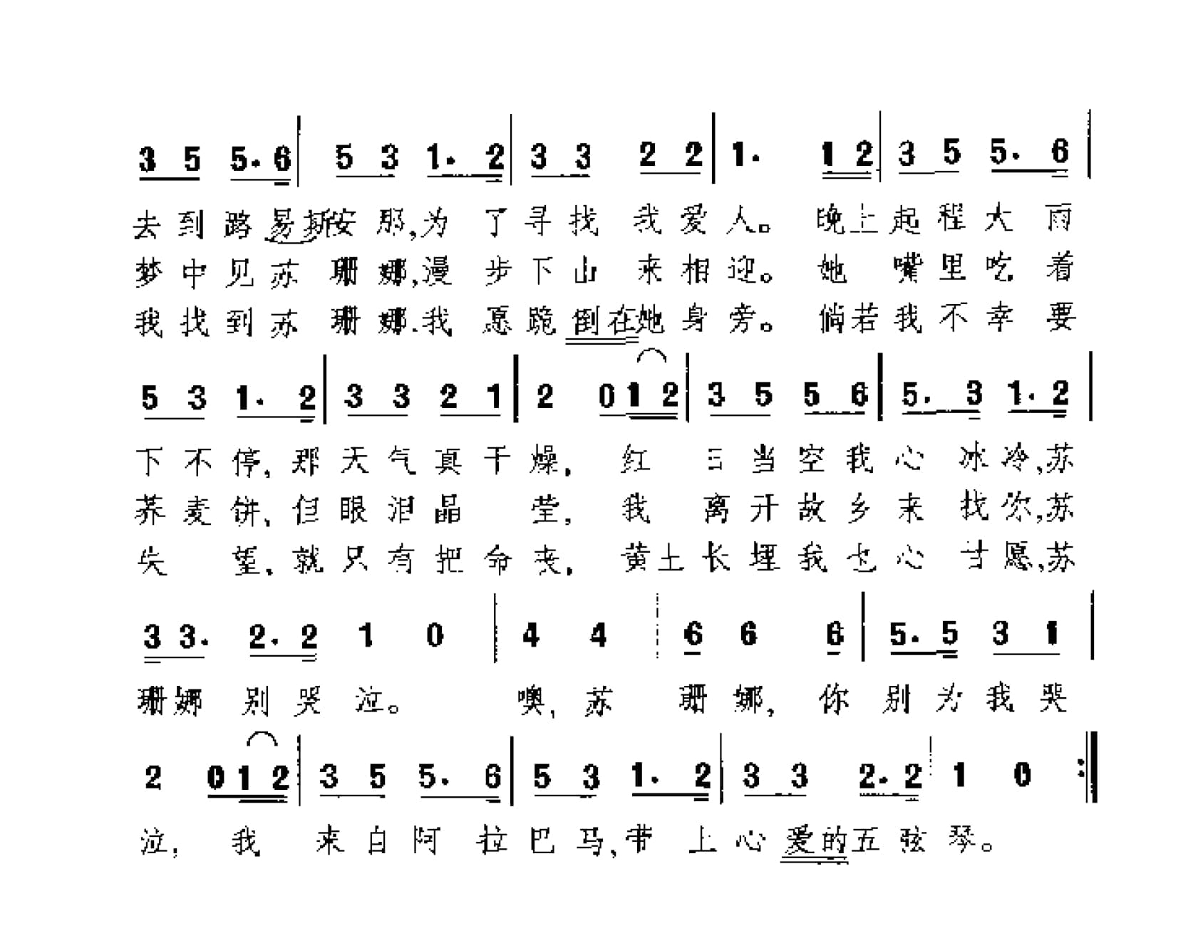 名称:外国古典歌曲简谱:苏珊娜 美 福斯特曲