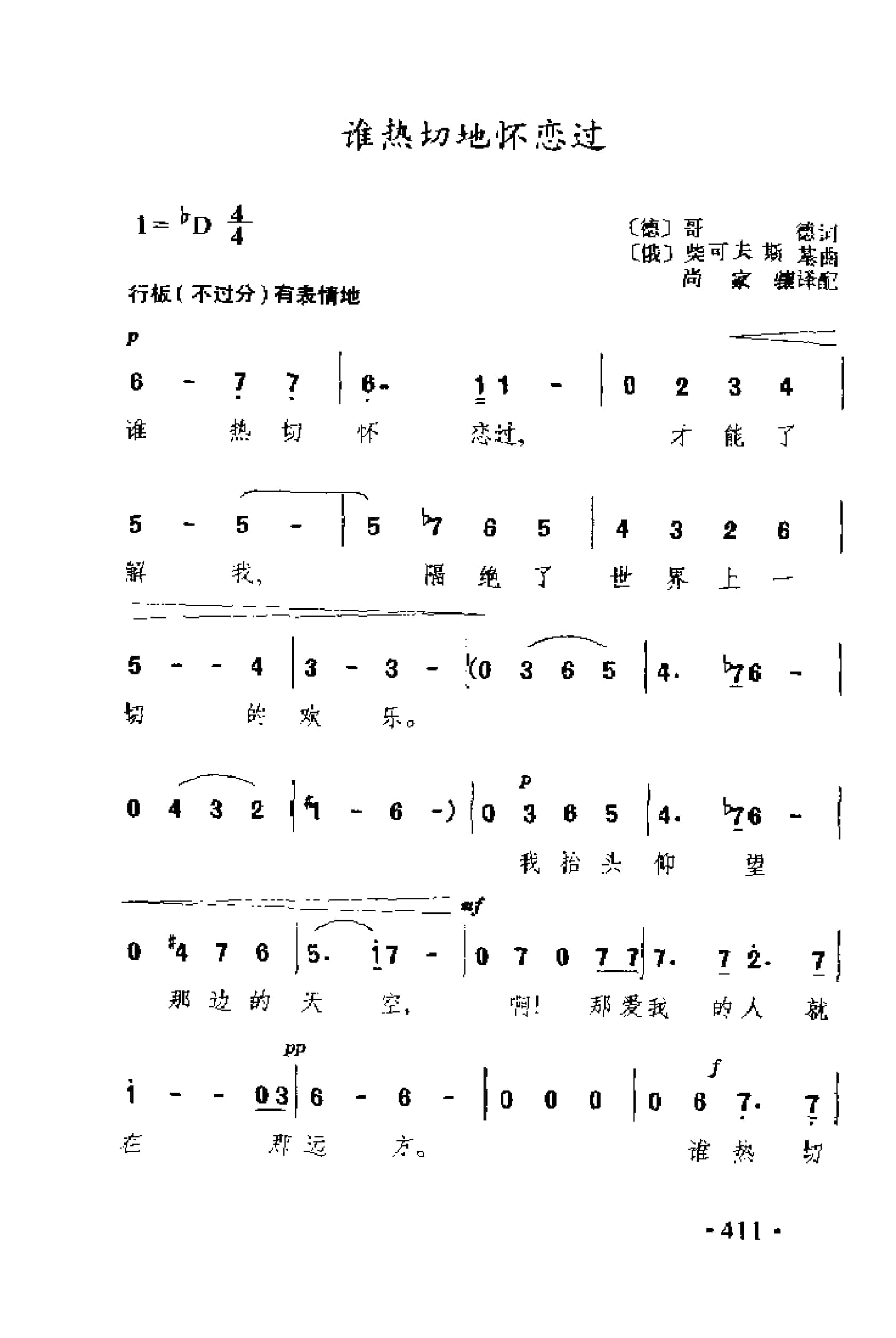 外国古典歌曲简谱:谁热切地怀恋过(俄)柴可夫斯基曲 简谱歌曲集-外国名歌1000首