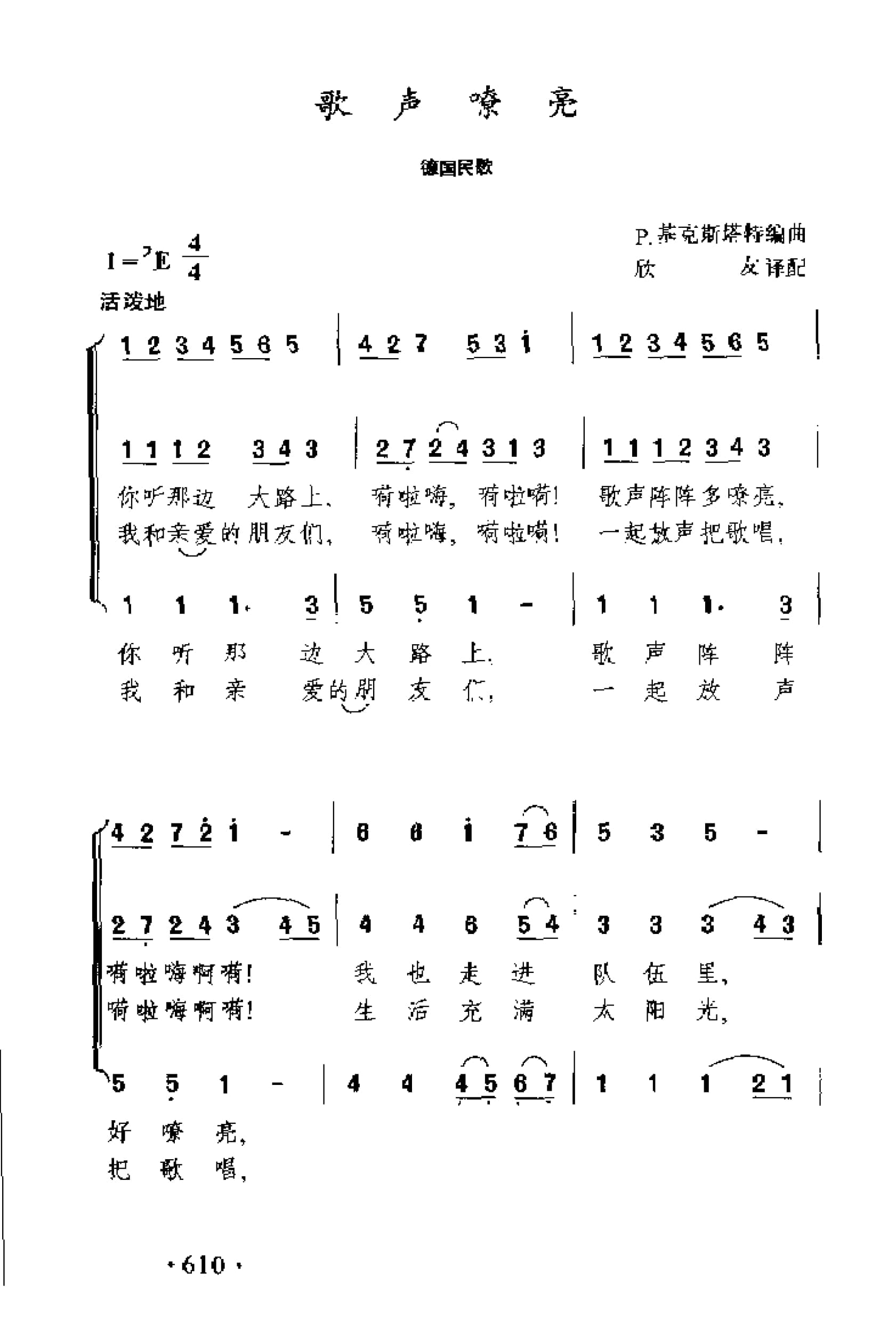 名称:外国民间乐曲简谱:歌声嘹亮 德国民歌