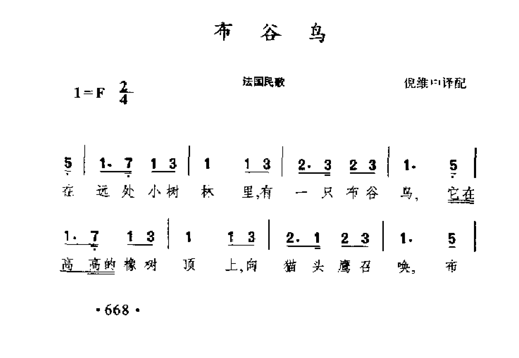 外国民间歌曲简谱:布谷鸟(法国民歌)
