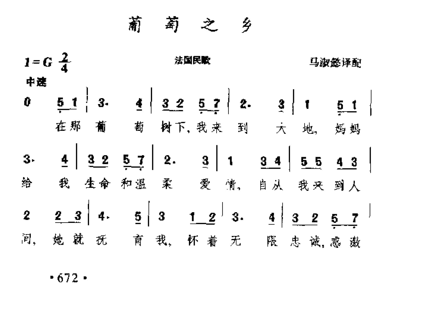 名称:外国民间歌曲简谱:葡萄这乡 法国民歌国家:法国分类:歌谱子类:外国歌谱类型:简谱文件格式:jpg