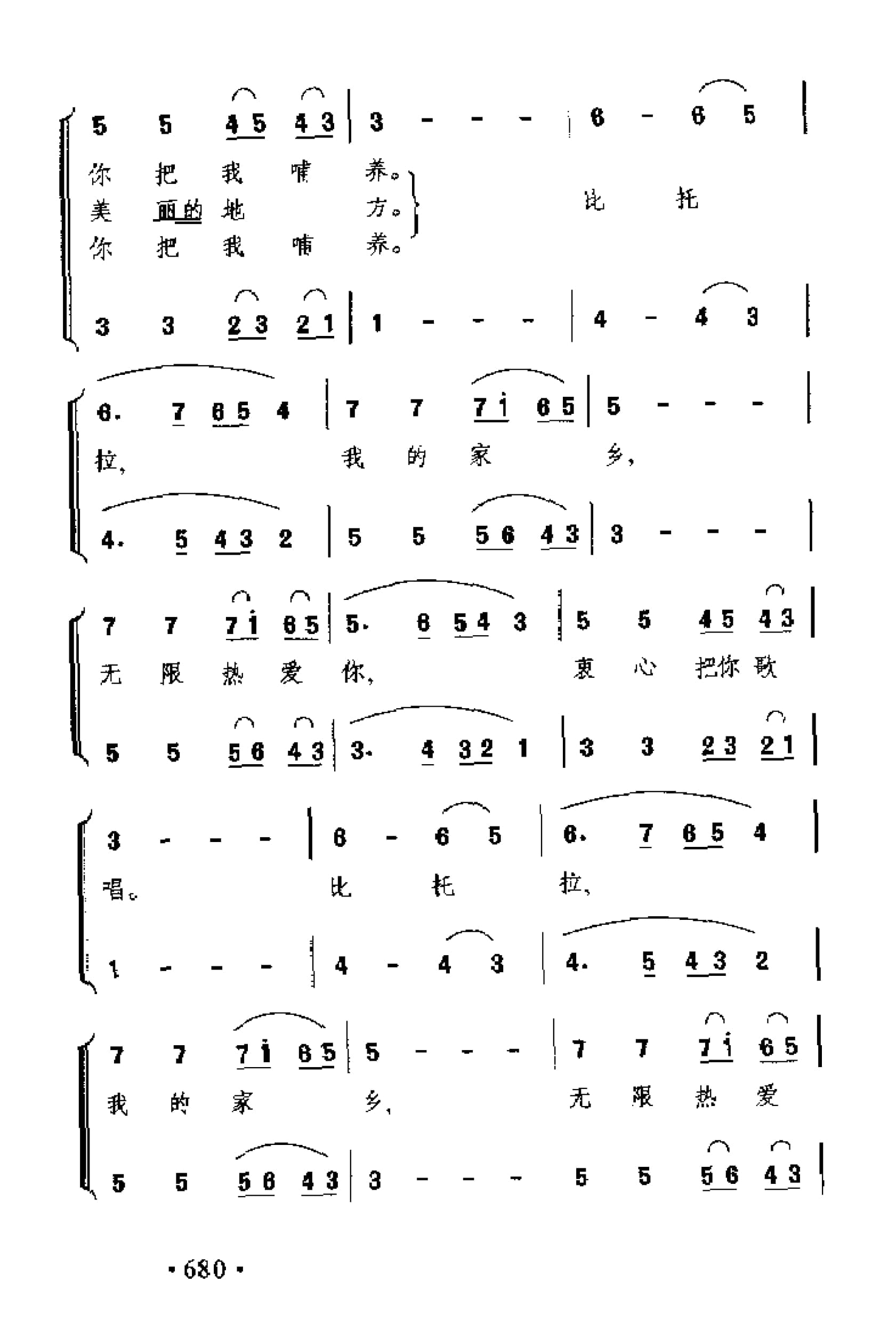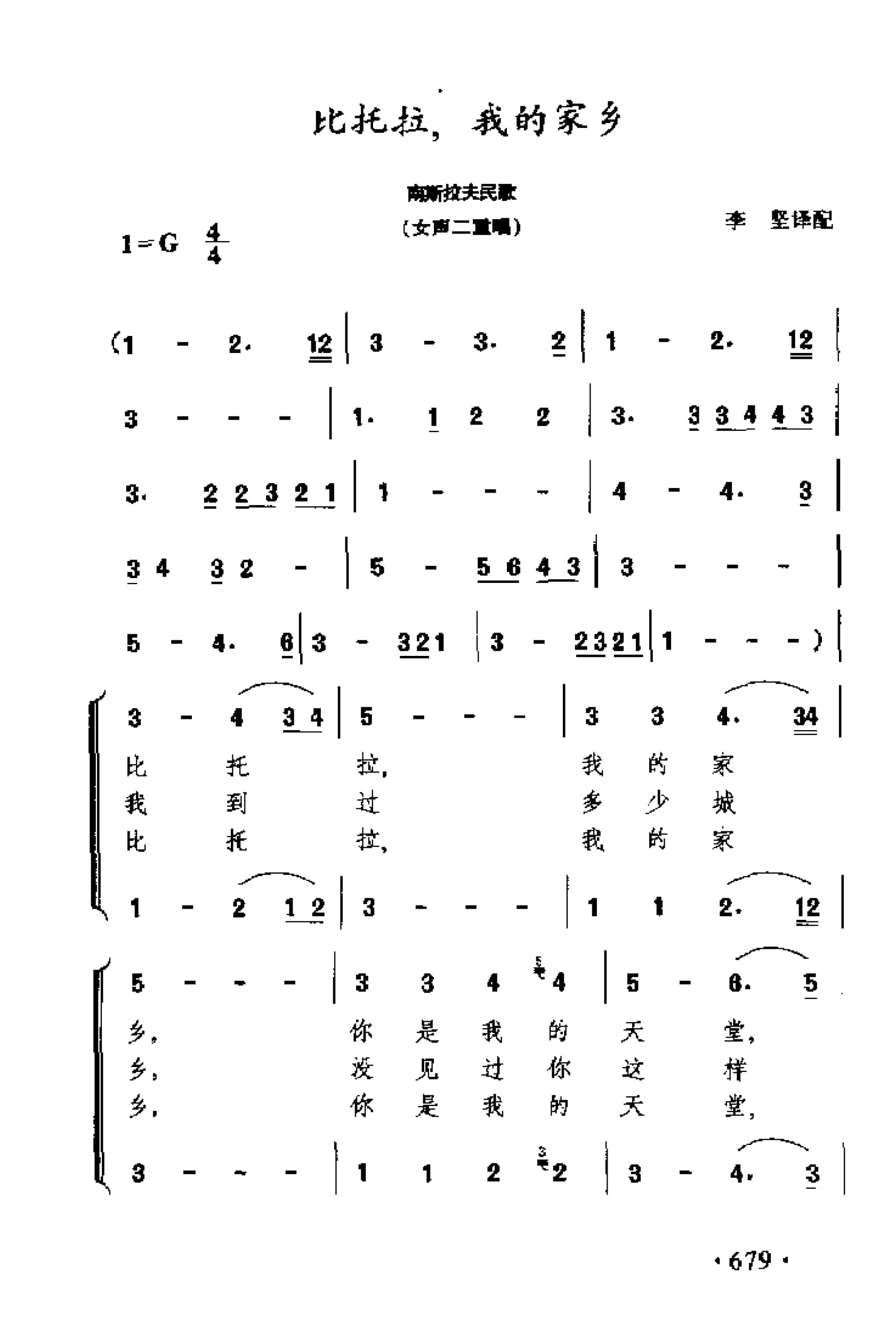 名称:外国民间歌曲简谱:比托拉,我的家乡 南斯拉夫民歌