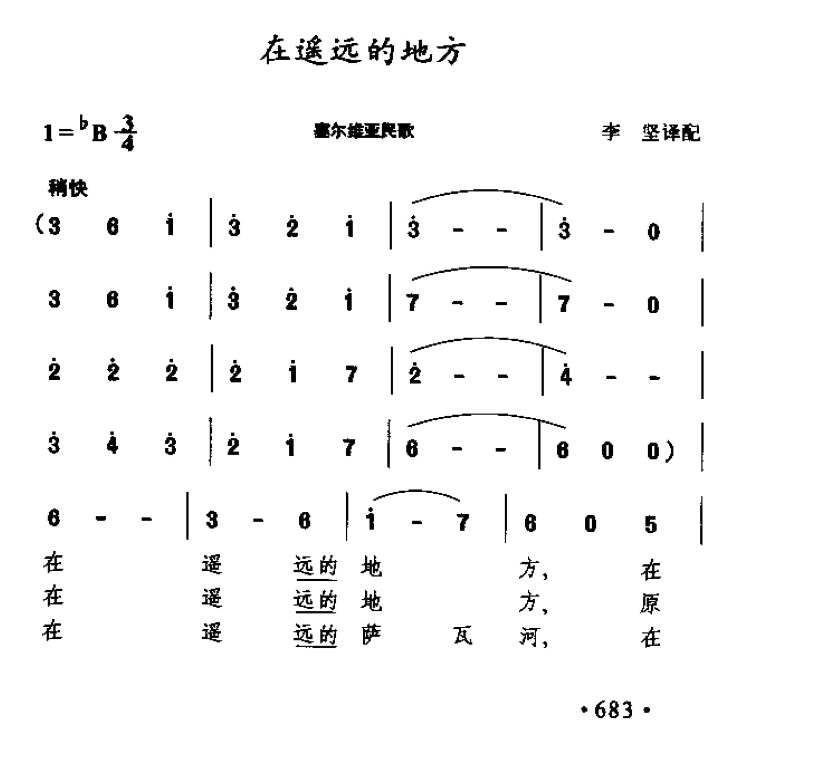 名称:外国民间歌曲简谱:在遥远的地方 塞尔维亚民歌