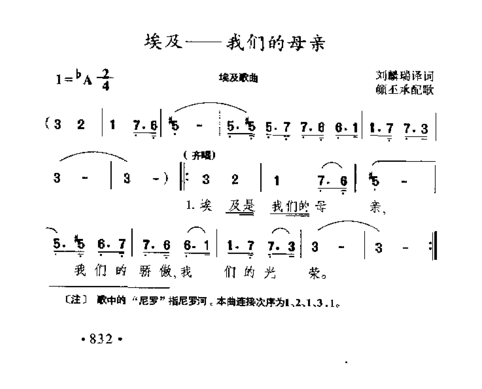 名称:外国现代歌曲简谱:埃及一一我们的母亲 埃及歌曲国家:埃及分类:歌谱子类:外国歌谱类型:简谱文件格式:jpg
