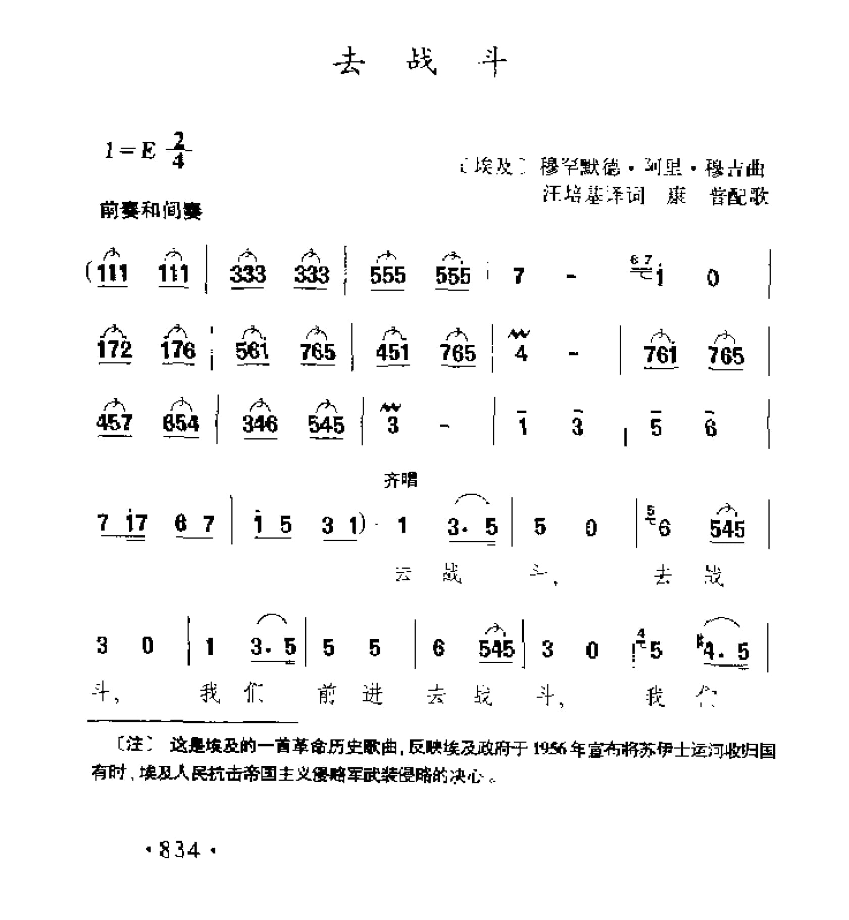 名称:外国现代歌曲简谱:去战斗 埃及 穆罕默德 阿里 穆吉曲国家:埃及分类:歌谱子类:外国歌谱类型:简谱文件格式:jpg