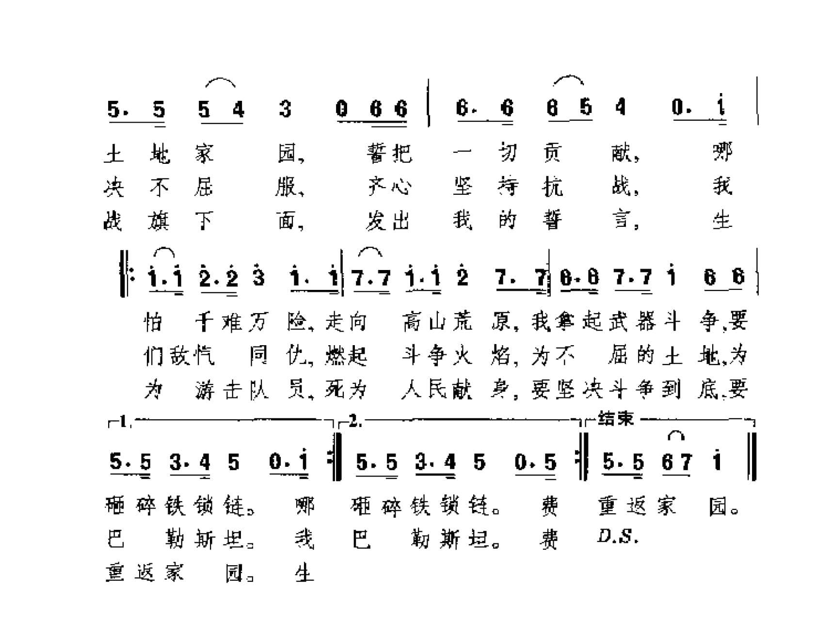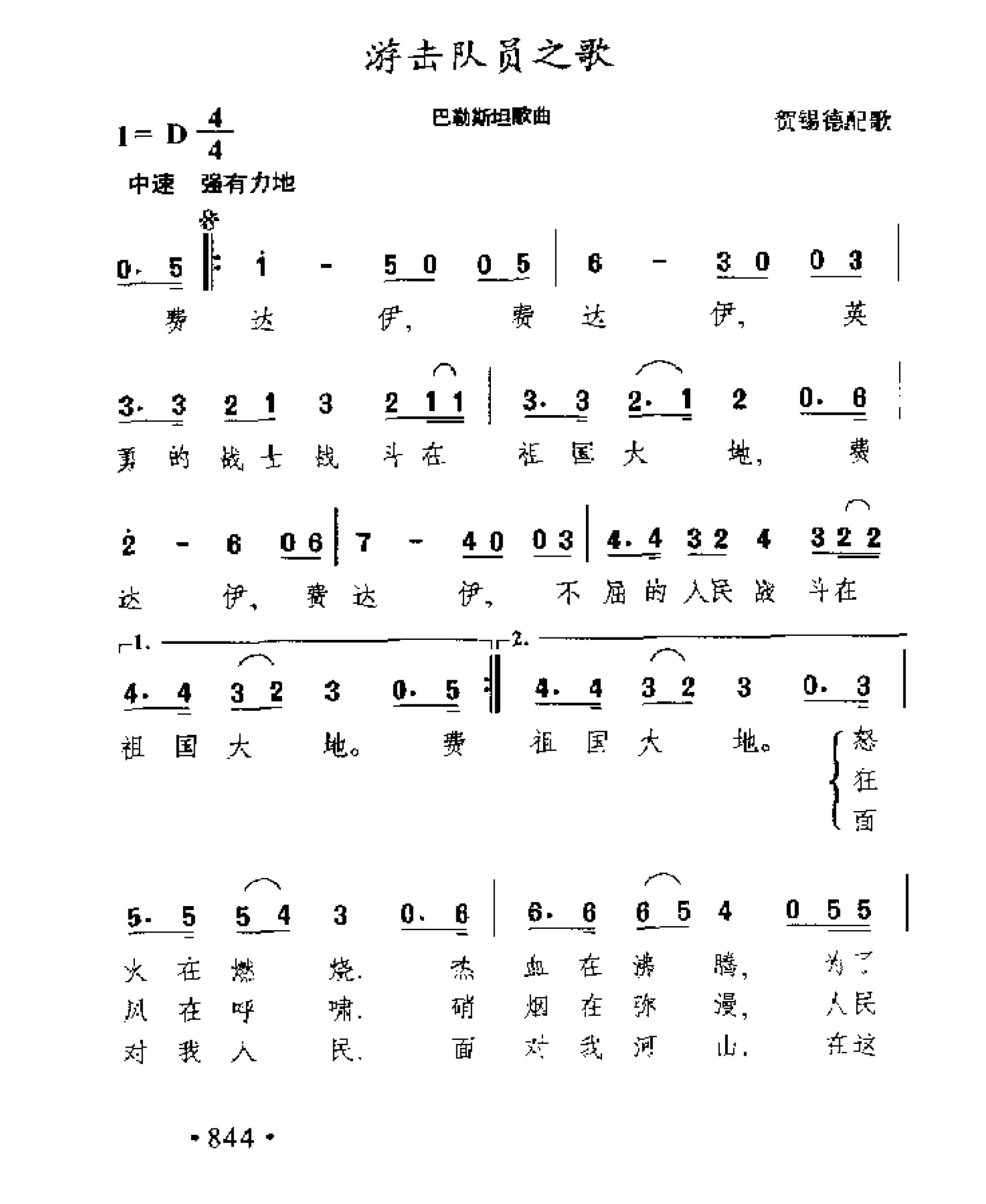 名称:外国现代歌曲简谱:游击队员之歌 巴勒斯坦歌曲国家:巴勒斯坦分类:歌谱子类:外国歌谱类型:简谱文件格式:jpg