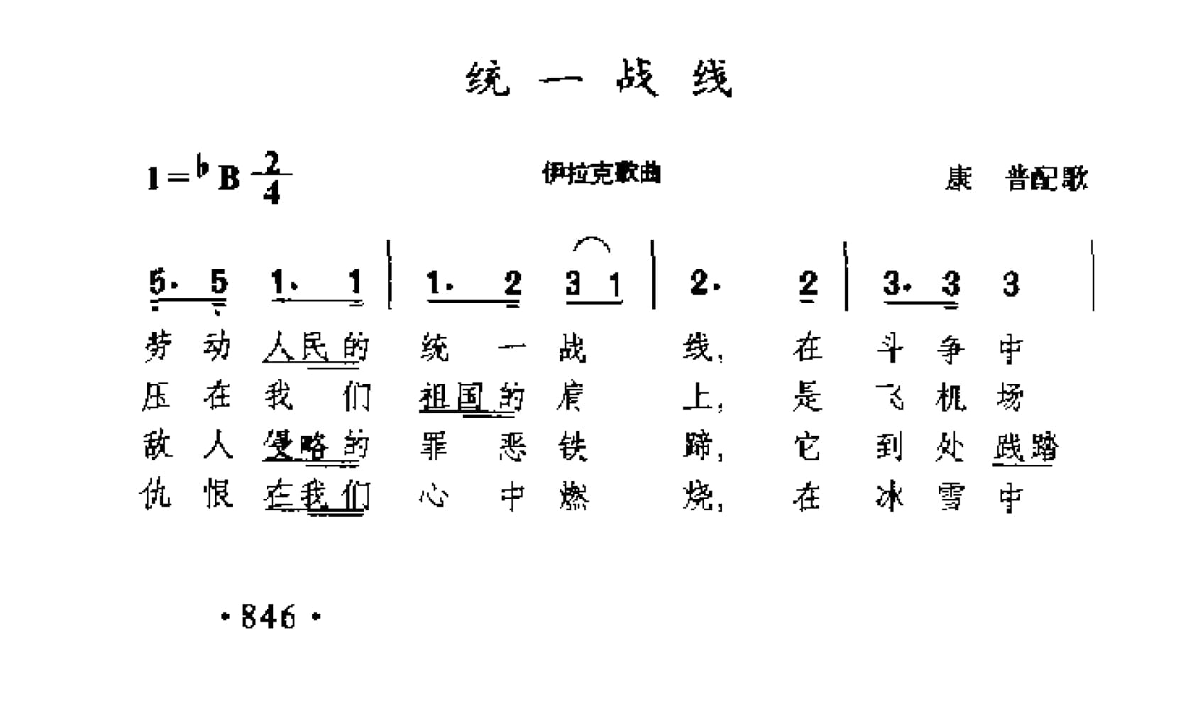 名称:外国现代歌曲简谱:统一战线 伊拉克歌曲
